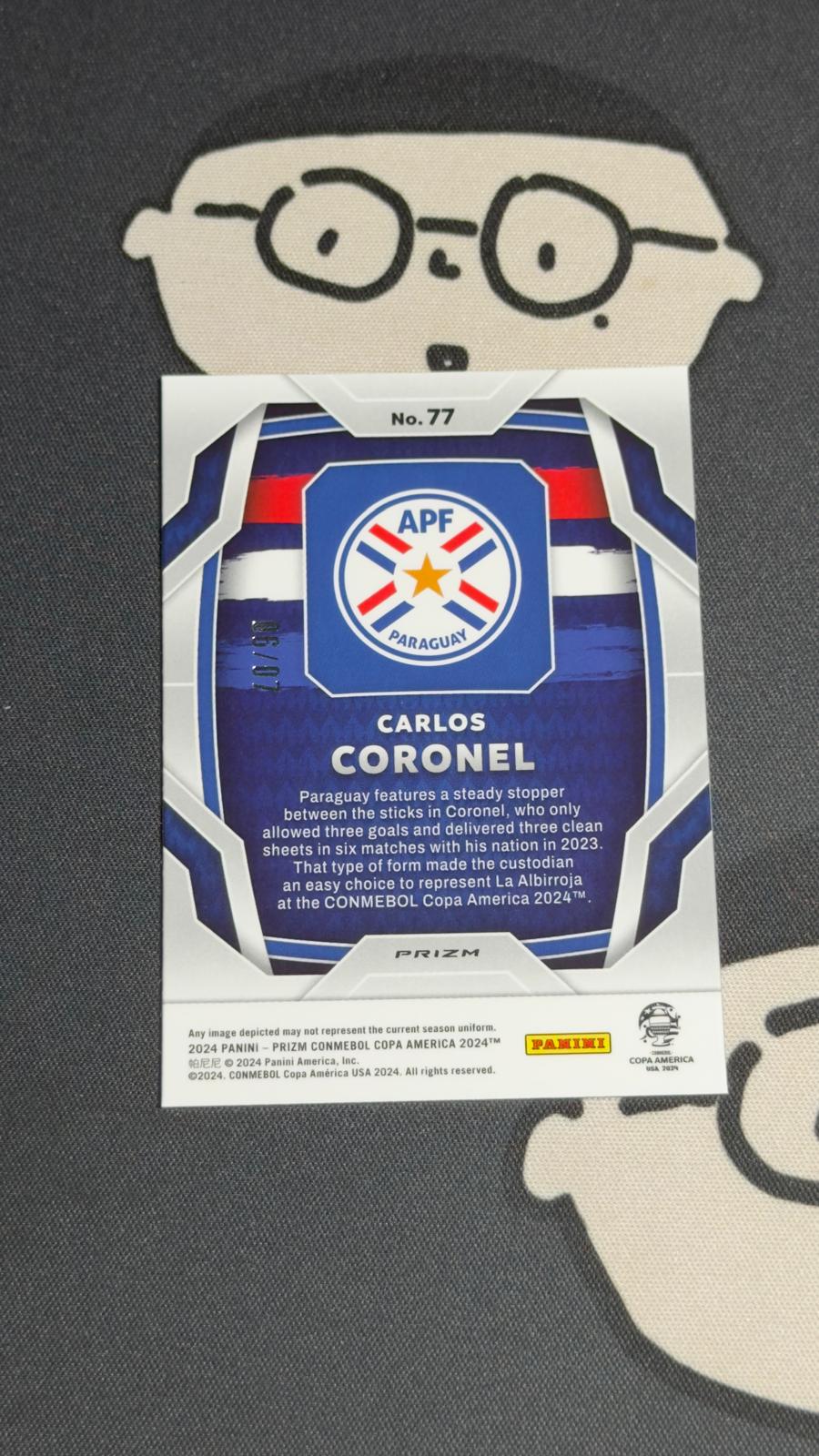 2024 Prizm COPA America Carlos Coronel 【HH47】 帕尼尼 Prizm 美洲杯 卡洛斯 科罗内尔 巴拉圭 新秀rc /7编 蓝simmer折 卡品如图 收藏必备 DW