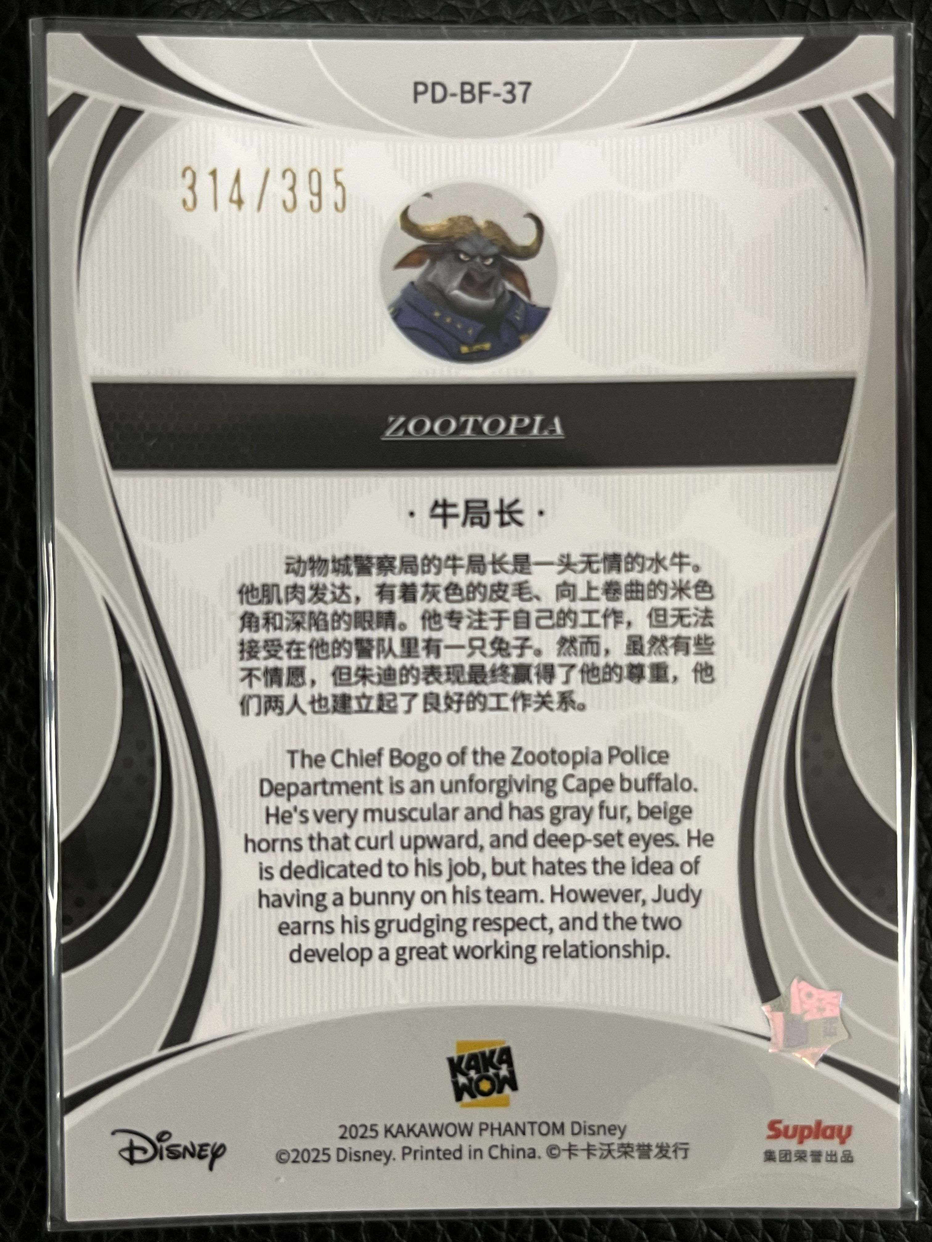 卡卡沃 2025 KAKAWOW PHANTOM 迪士尼系列收藏卡 基础卡-四叶草折 雯H(13B)314/395编 卡号37 牛局长 Chief Bogo