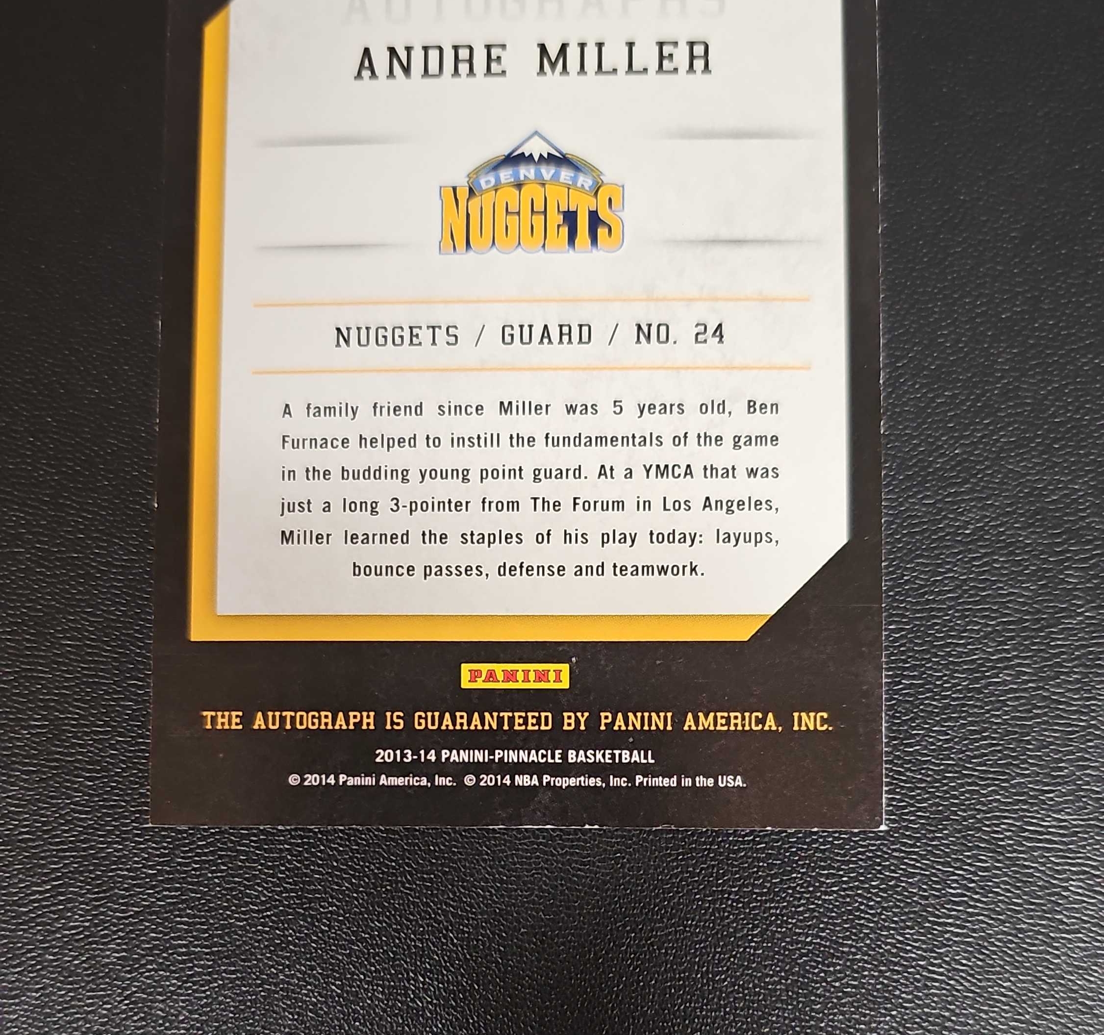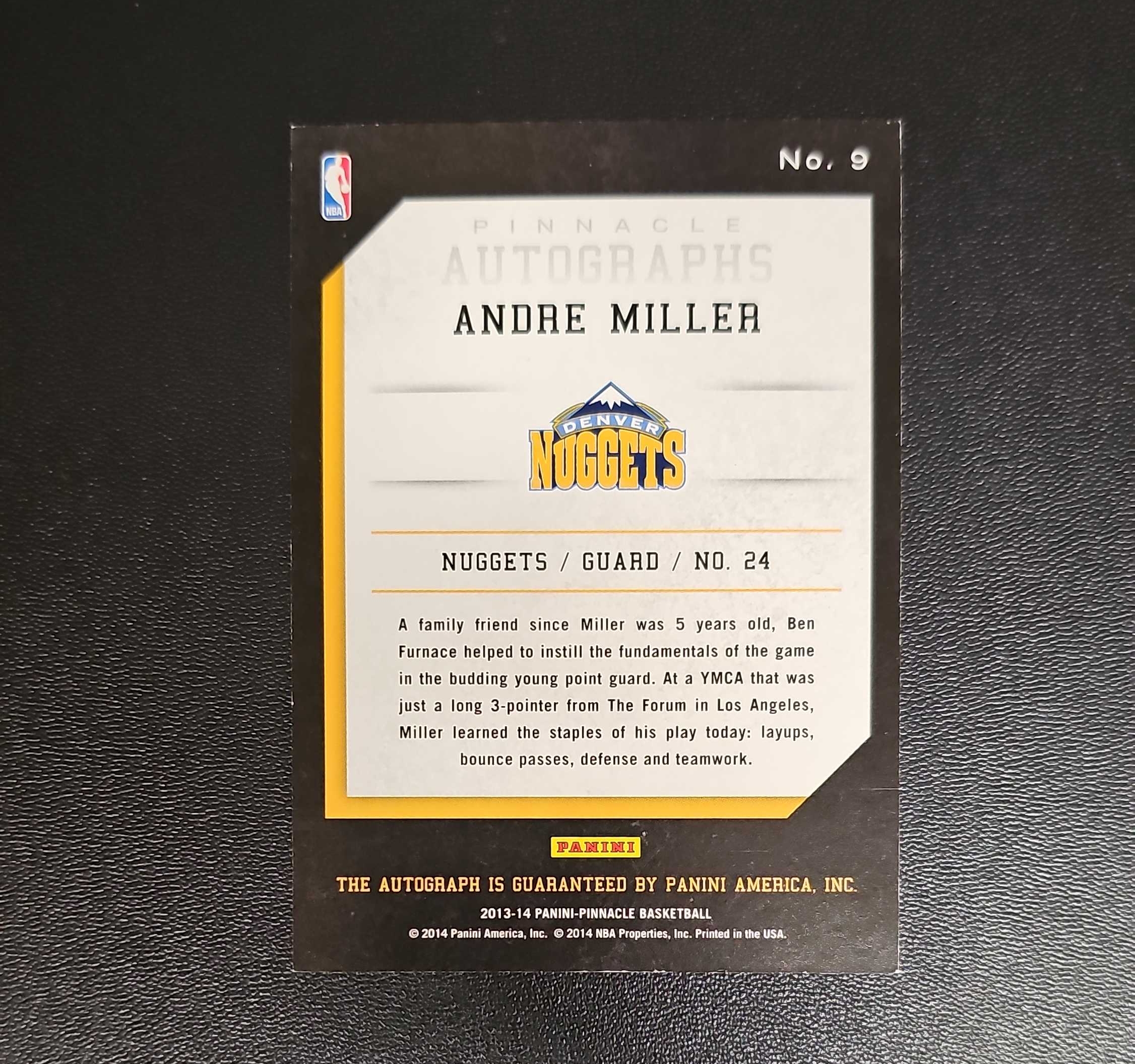2013-14 Panini Pinnacle Andre Miller 【幻想代拍】巅峰 顶峰 掘金 安德烈 米勒 签字 背号签 实卡精美 收藏必备 微瑕见图