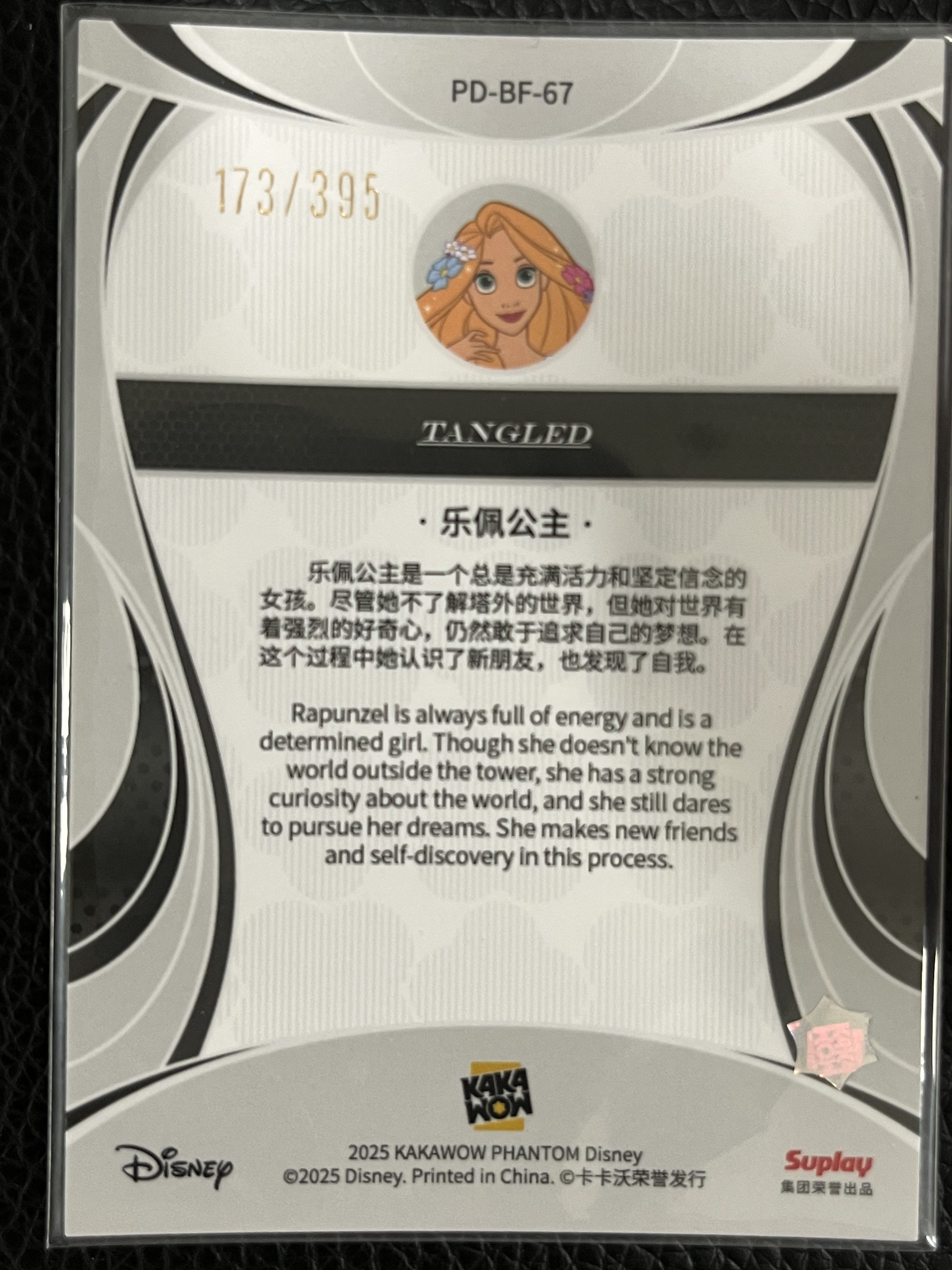 卡卡沃 2025 KAKAWOW PHANTOM 迪士尼系列收藏卡 基础卡-四叶草折 雯H(13B)173/395编 卡号67 乐佩公主 Rapunzel