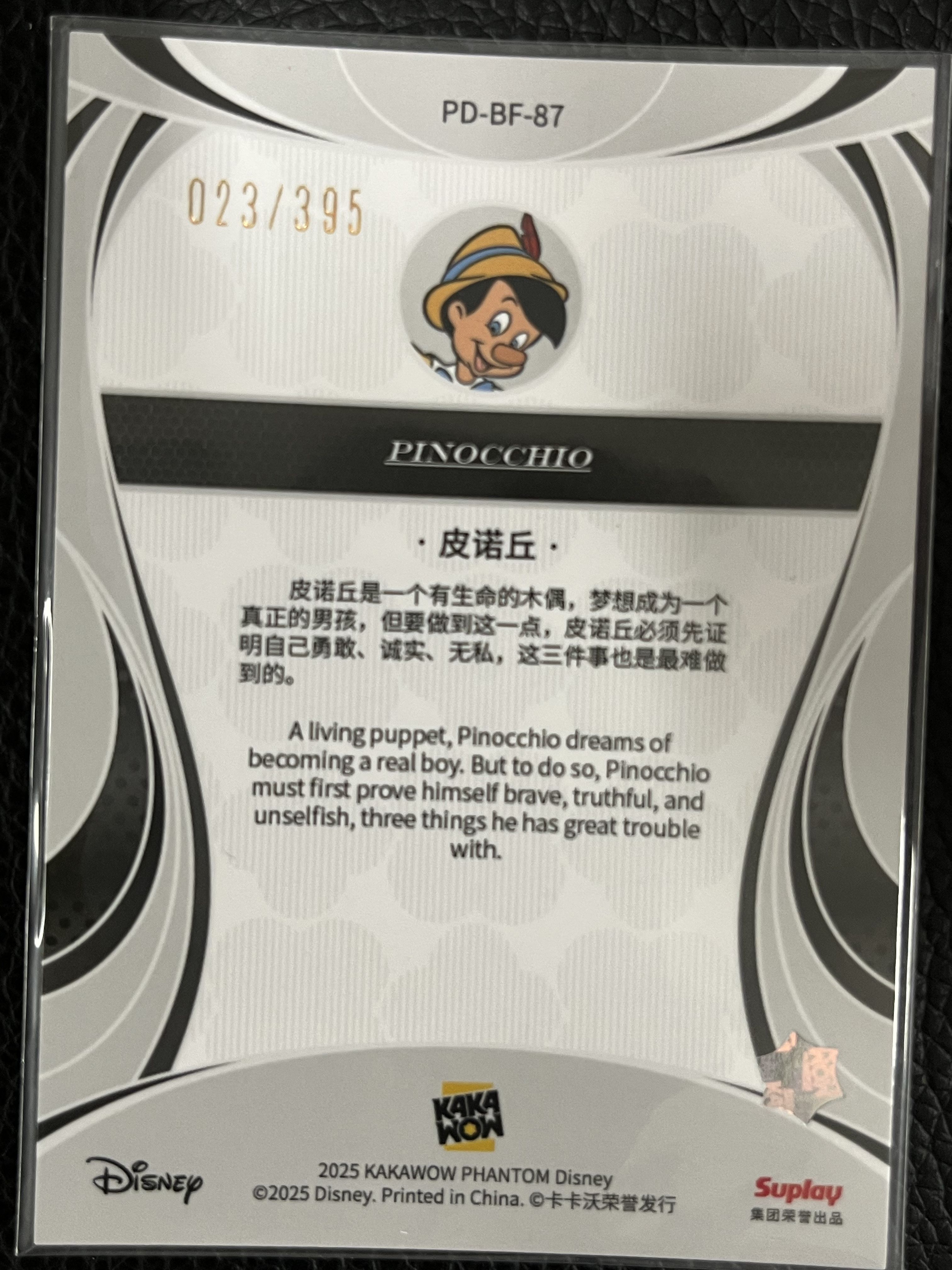 卡卡沃 2025 KAKAWOW PHANTOM 迪士尼系列收藏卡 基础卡-四叶草折 雯H(13B)23/395编 卡号87 皮诺丘 Pinocchio