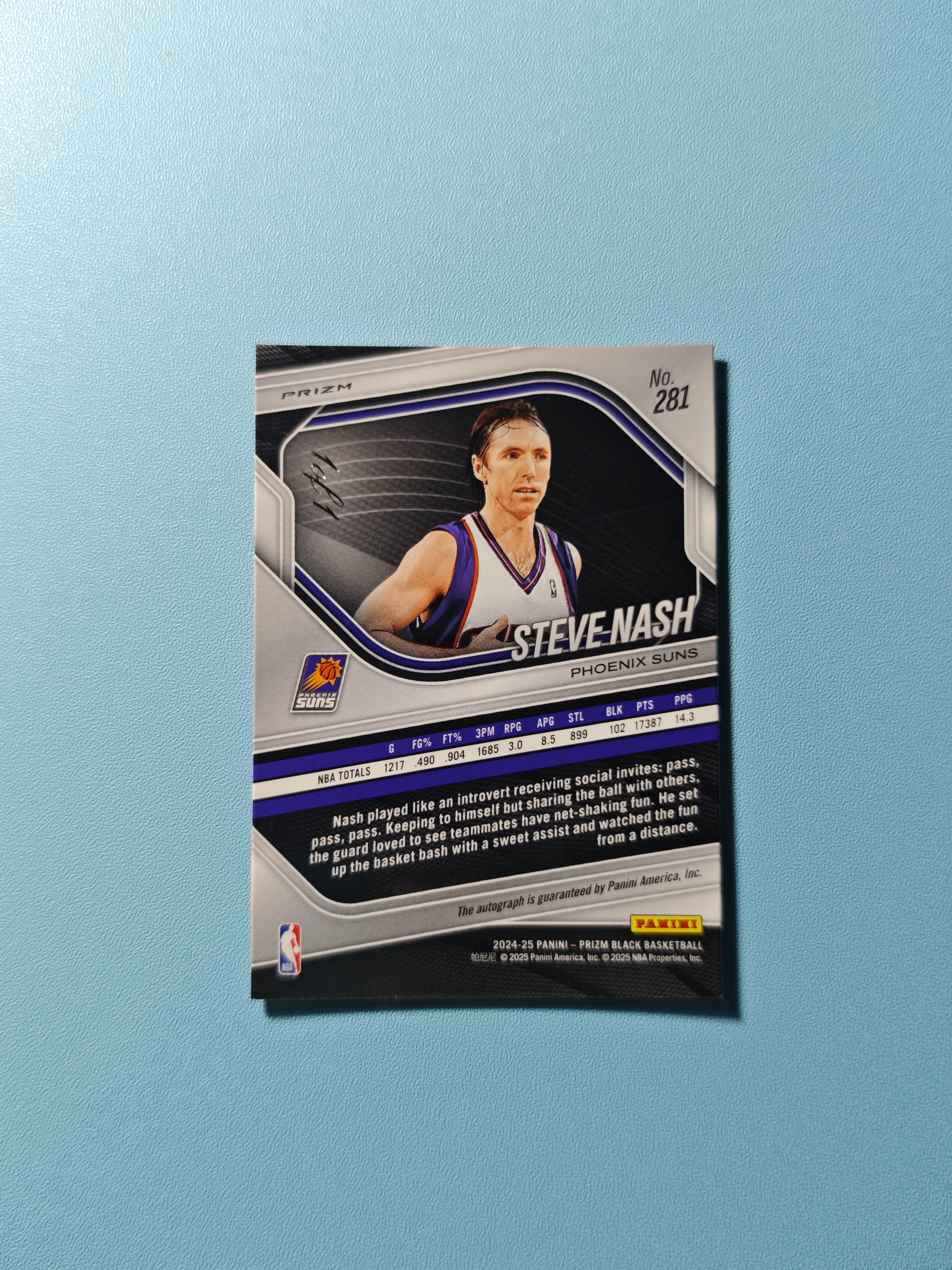 2024-25 Panini Prizm Black Steve Nash #281【咔嚓拍卖】湖人太阳 纳什 星云折签字1/1编1of1大热凑套专收必备皮娜