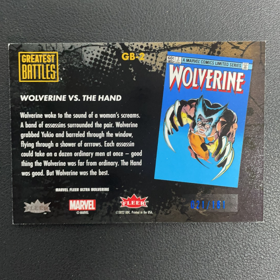 【大满拆】(段)2022 Fleer Marvel (MCU) 漫威金刚狼厚卡 #GB-2 对战特卡 181编 Greatest Battle Wolverine 关联蜘蛛侠钢铁侠毒液 卡品如图