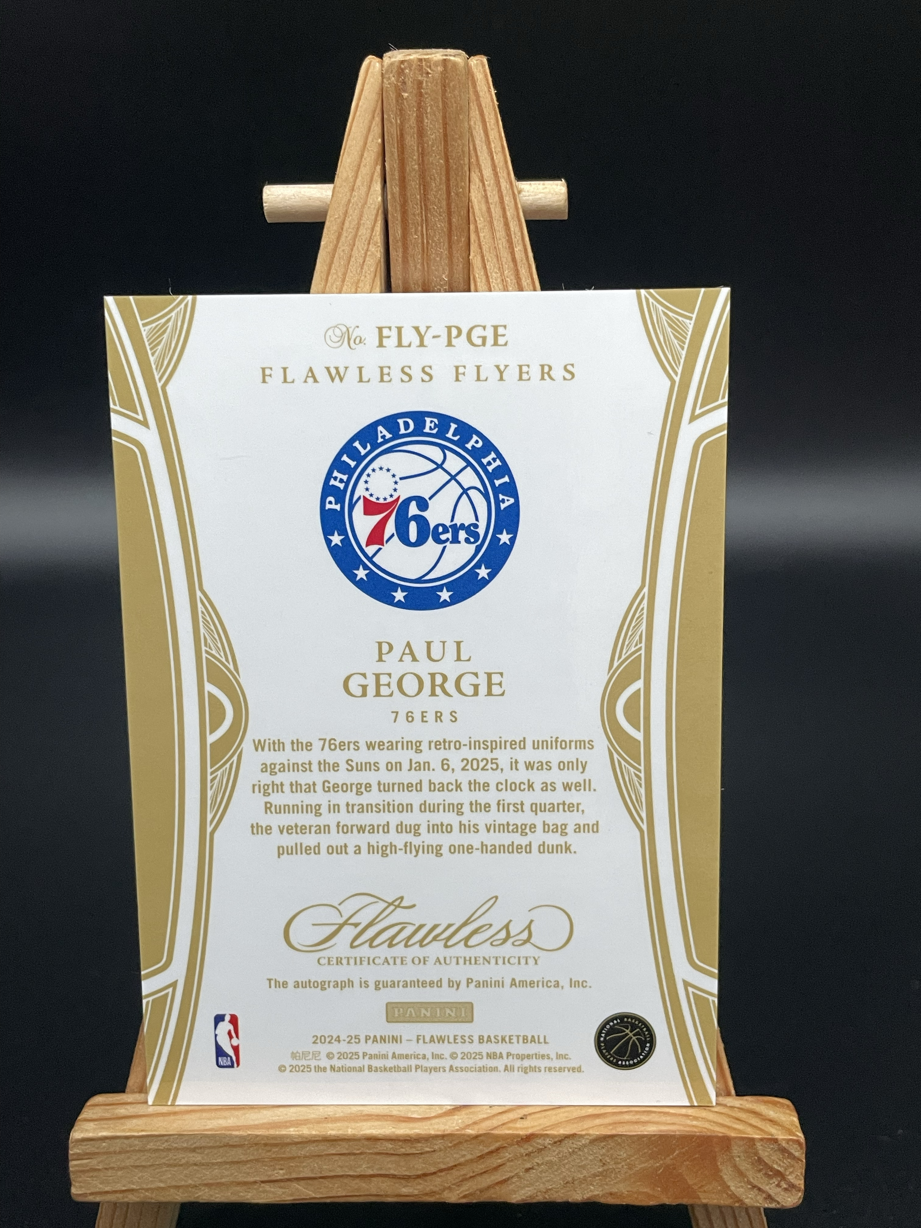 2024-25 Panini Flawless Paul George 【白鸟代卖 口罩 寄付特快】手提 飞翔 飞行 FLYERS 泡椒 保罗 乔治 /15编 签字 卡签 微瑕如图