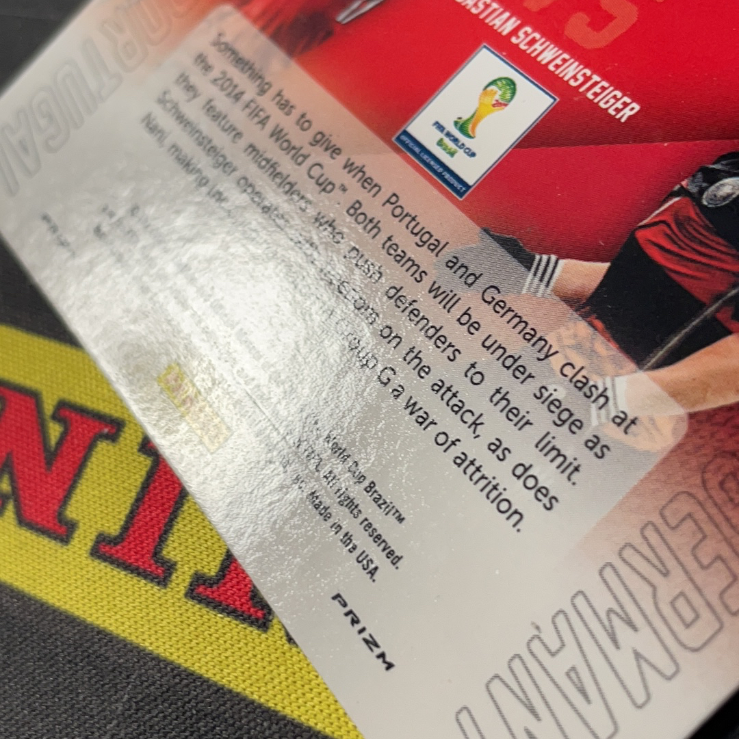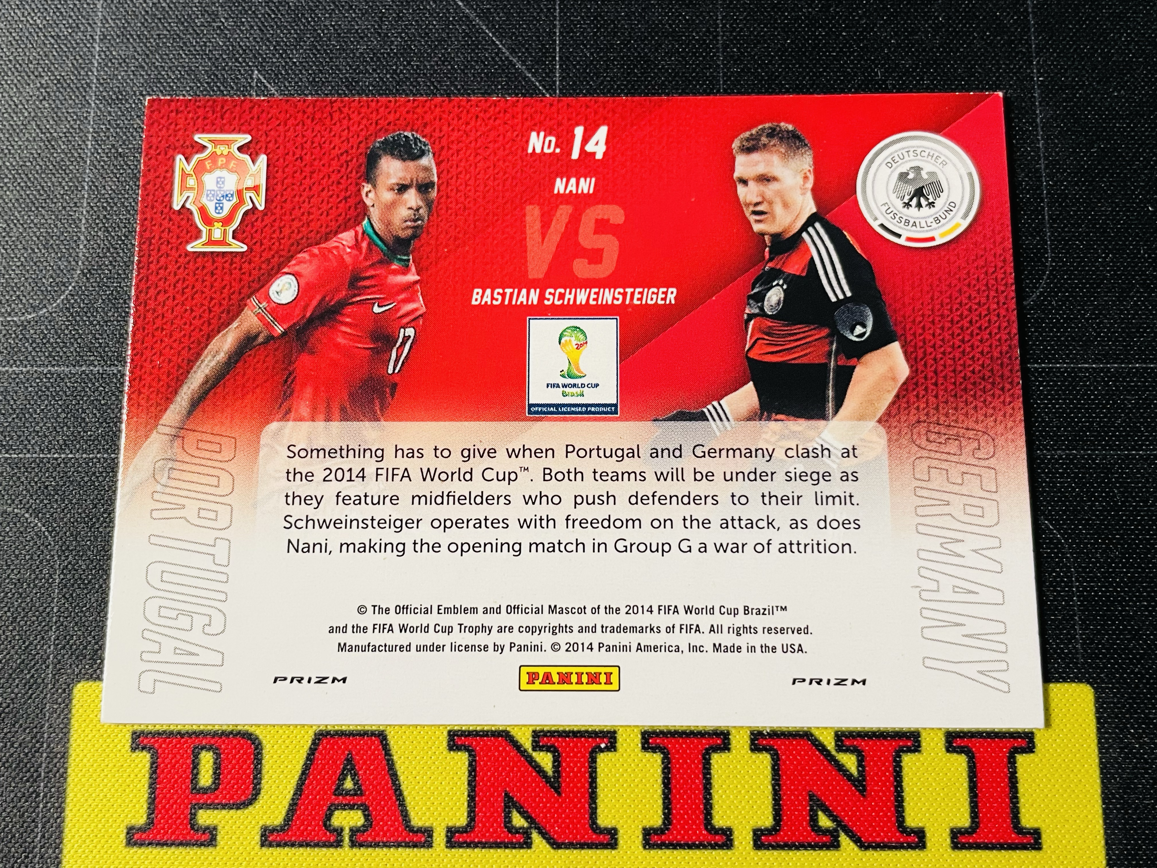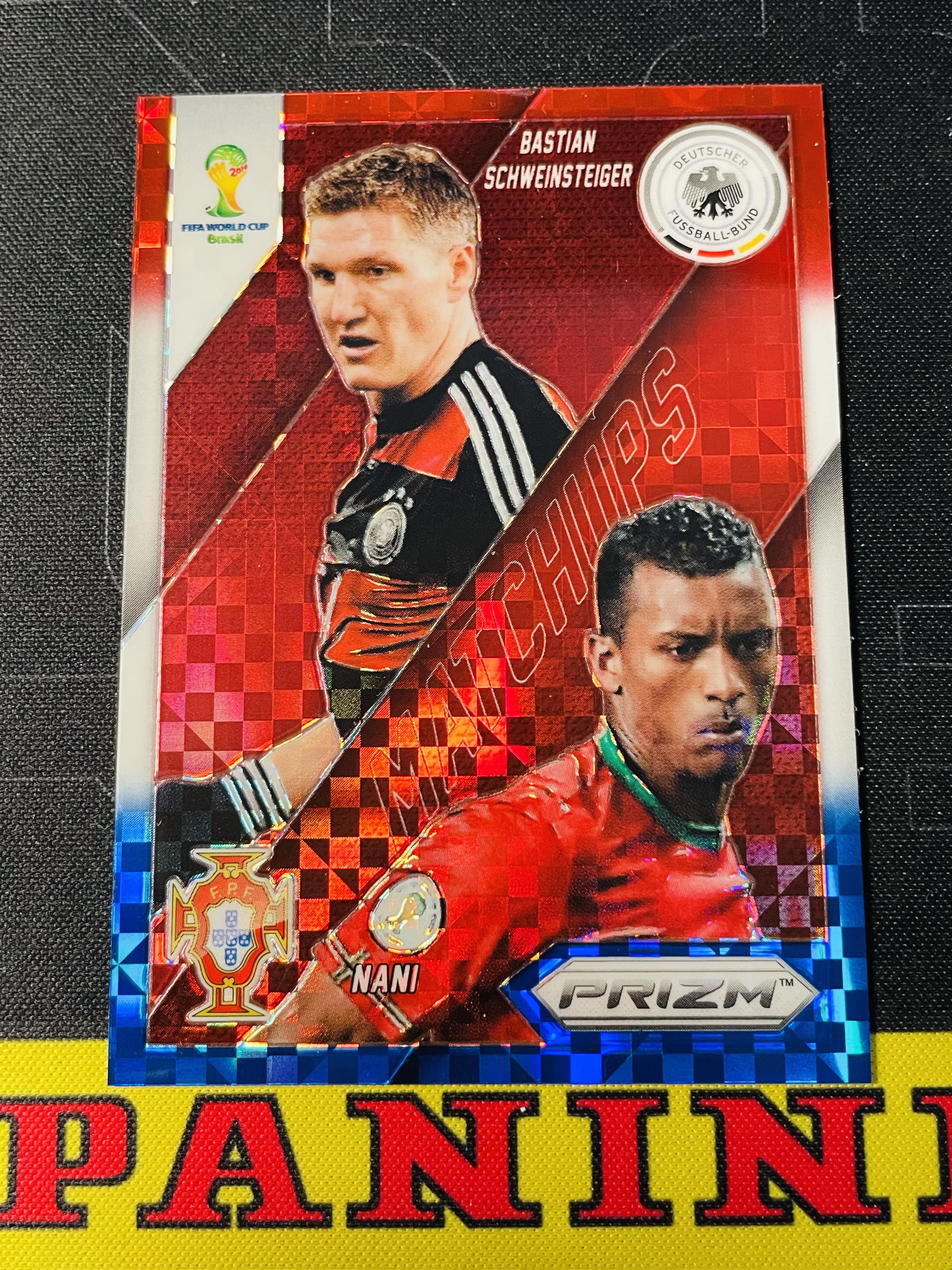 2014 Panini Prizm Schweinsteiger/Nani 【MJ23足球】世界杯元年PZ 德国 施魏因施泰格/纳尼 三色折 格子折射 Matchups双人对决特卡 卡品如图 红魔哥