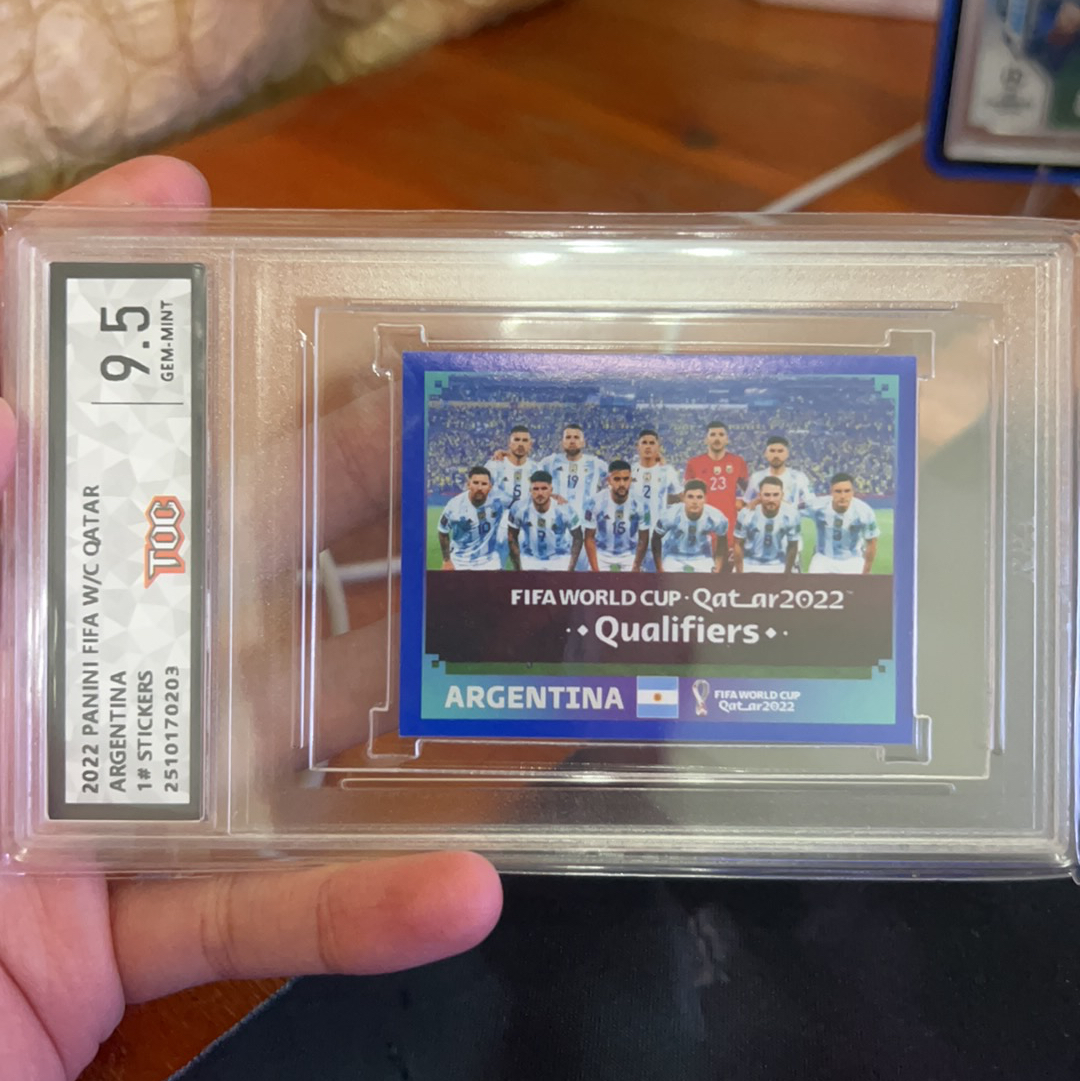 2022 Panini Collector's Choice Argentina Stickers Lionel Messi 阿根廷 球王 梅西 球队合照 贴纸 toc评级9.5分