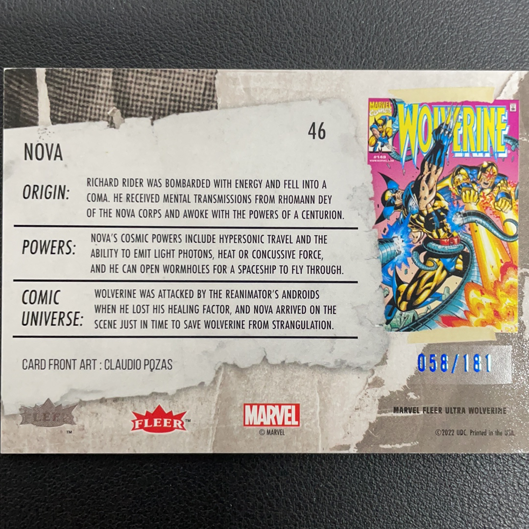 【大满拆】(段)2022 Fleer Marvel Ultra Wolverine 漫威 金刚狼系列 蓝狼爪折 蓝平行 新星 nova 58/181编 品相如图 凑套必备