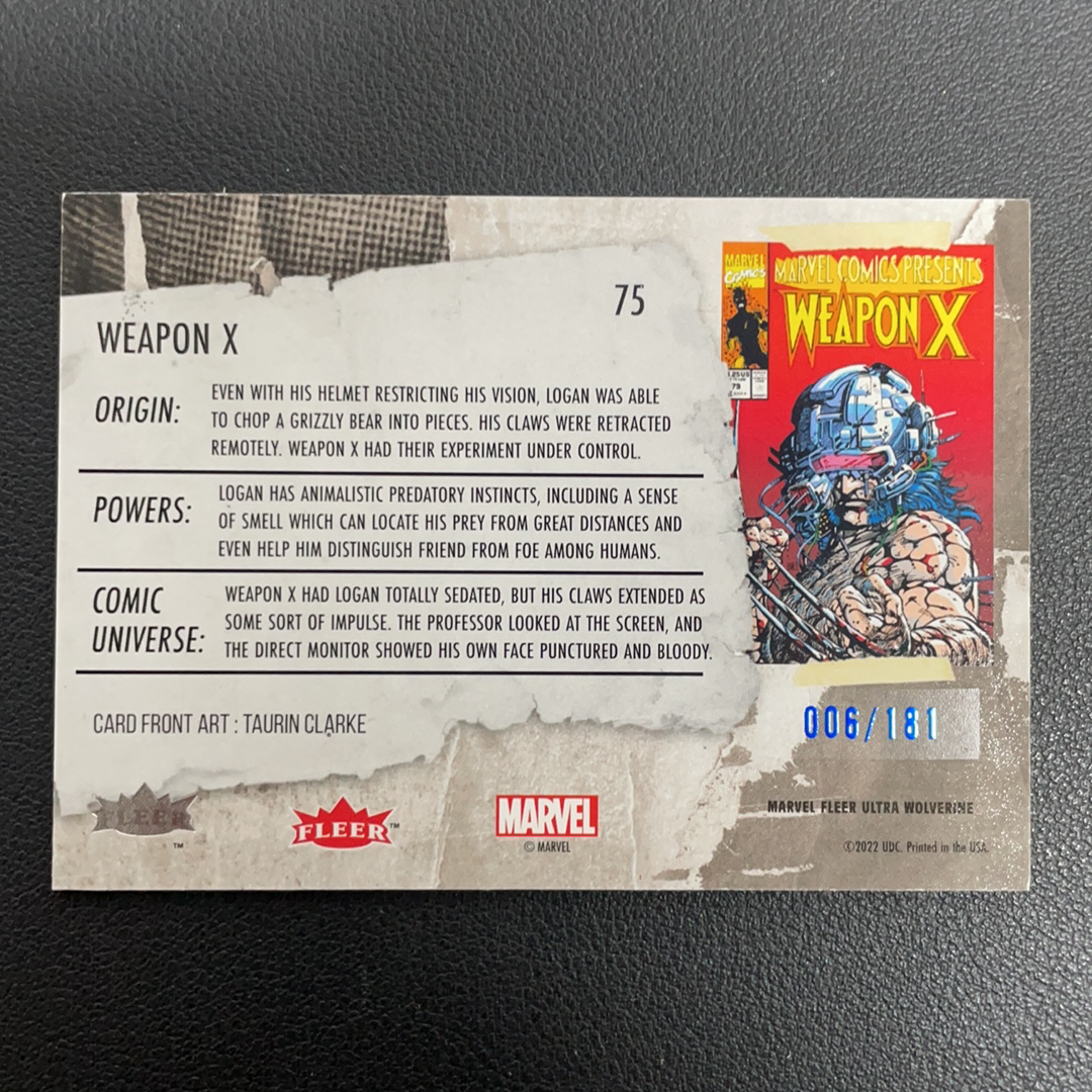 【大满拆】(段)2022 Fleer Marvel Ultra Wolverine 漫威 金刚狼系列 蓝狼爪折 蓝平行 x武器 weapon x 006/181编 品相如图 凑套必备