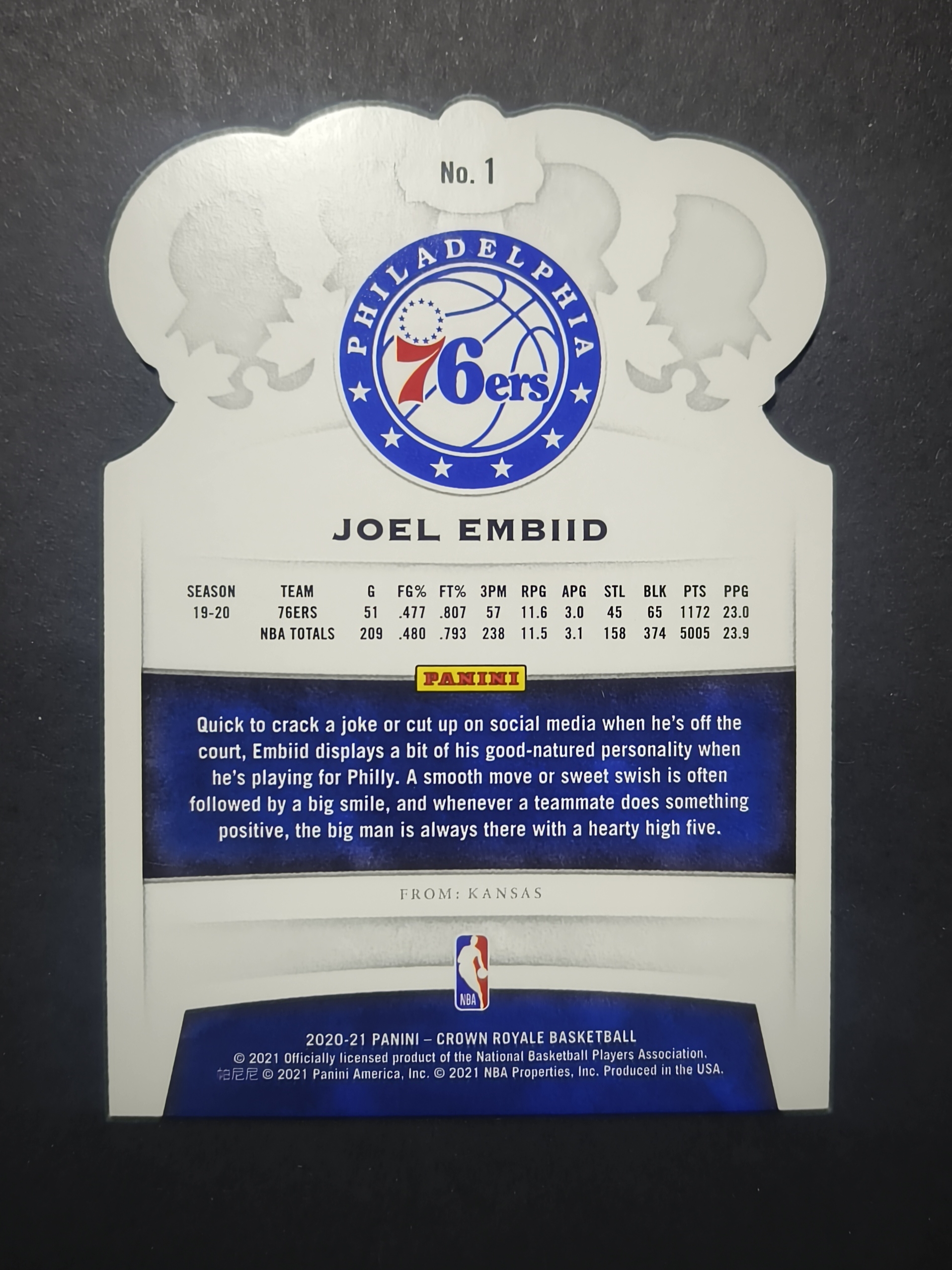 2020-21 Panini Crown Royale Joel Embiid 【lge代卖】大帝 恩比德 皇冠 异形 碎冰折 凑套必备 76人 可累计三天