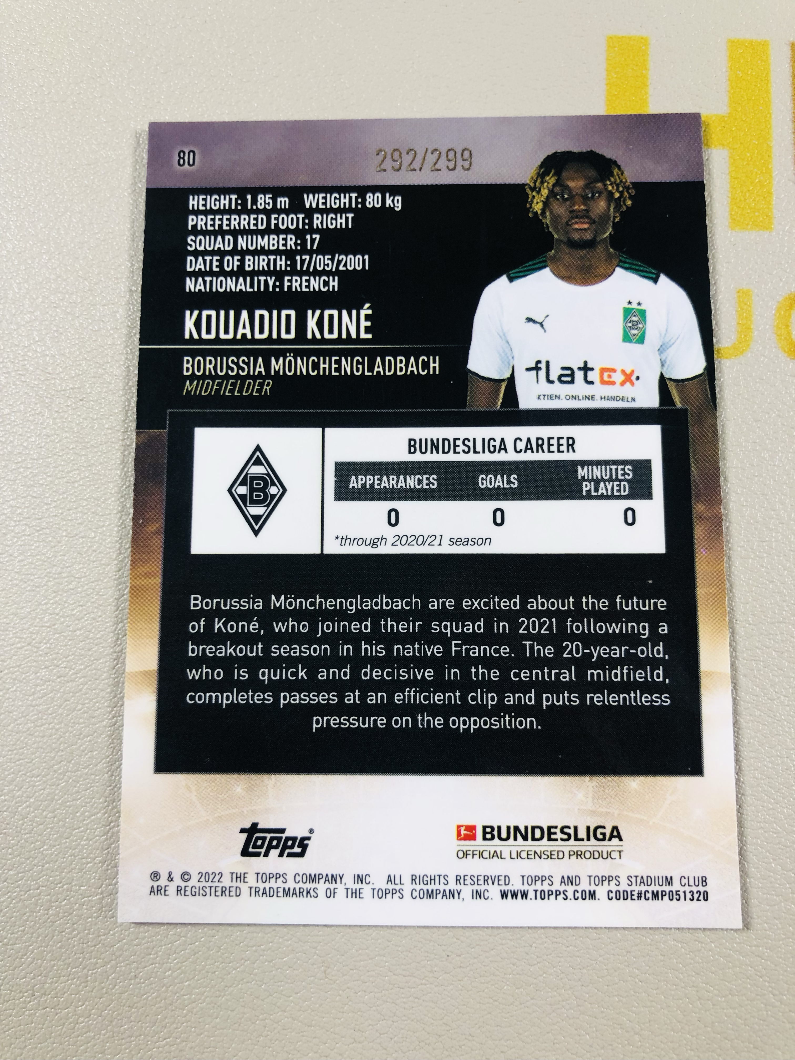 2022 Topps Chrome Kouadio Koné RC 德甲 Chrome 竞技场 新秀 门兴 科内 292/299编 单卡低于10元无卡夹介意勿拍 钢子1113
