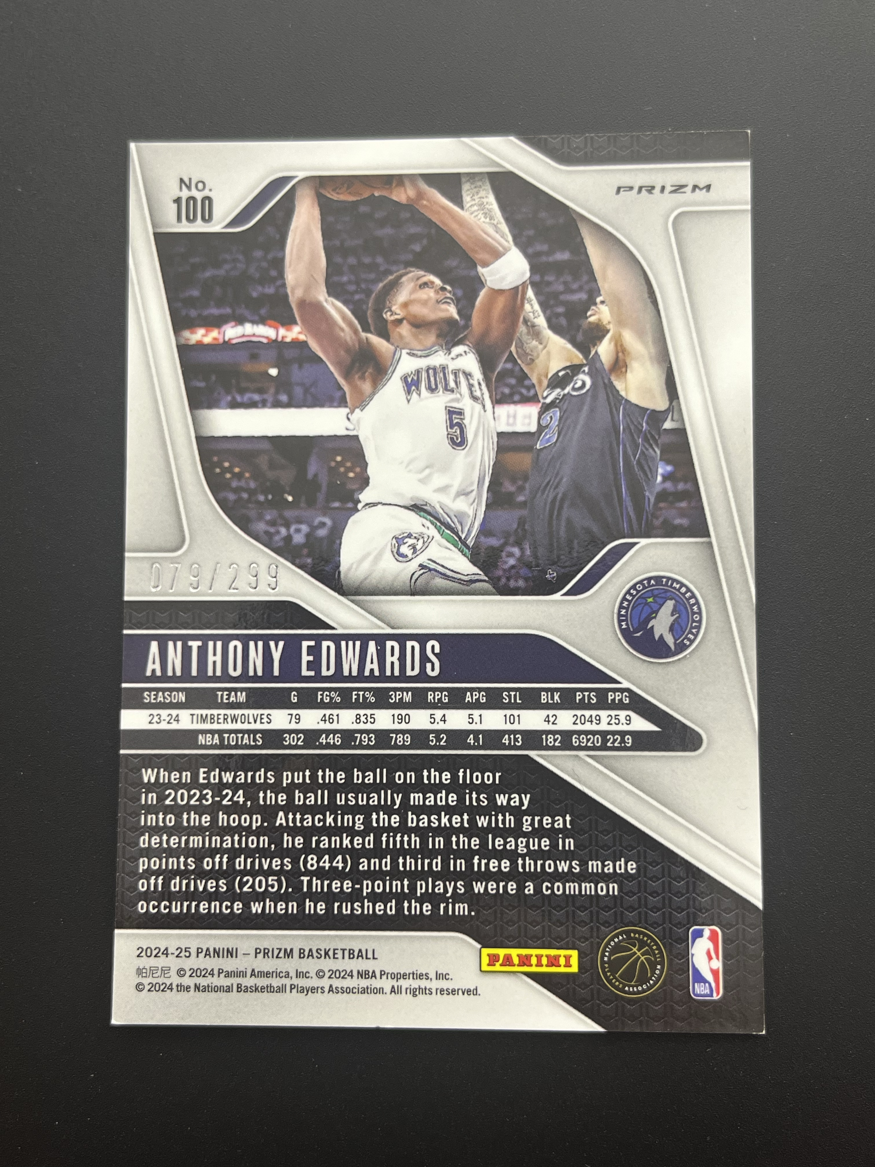 2024-25 Panini Prizm Anthony Edwards PZ 森林狼 华子 安东尼 爱德华兹 299编 红熔岩折 折射 卡品如图