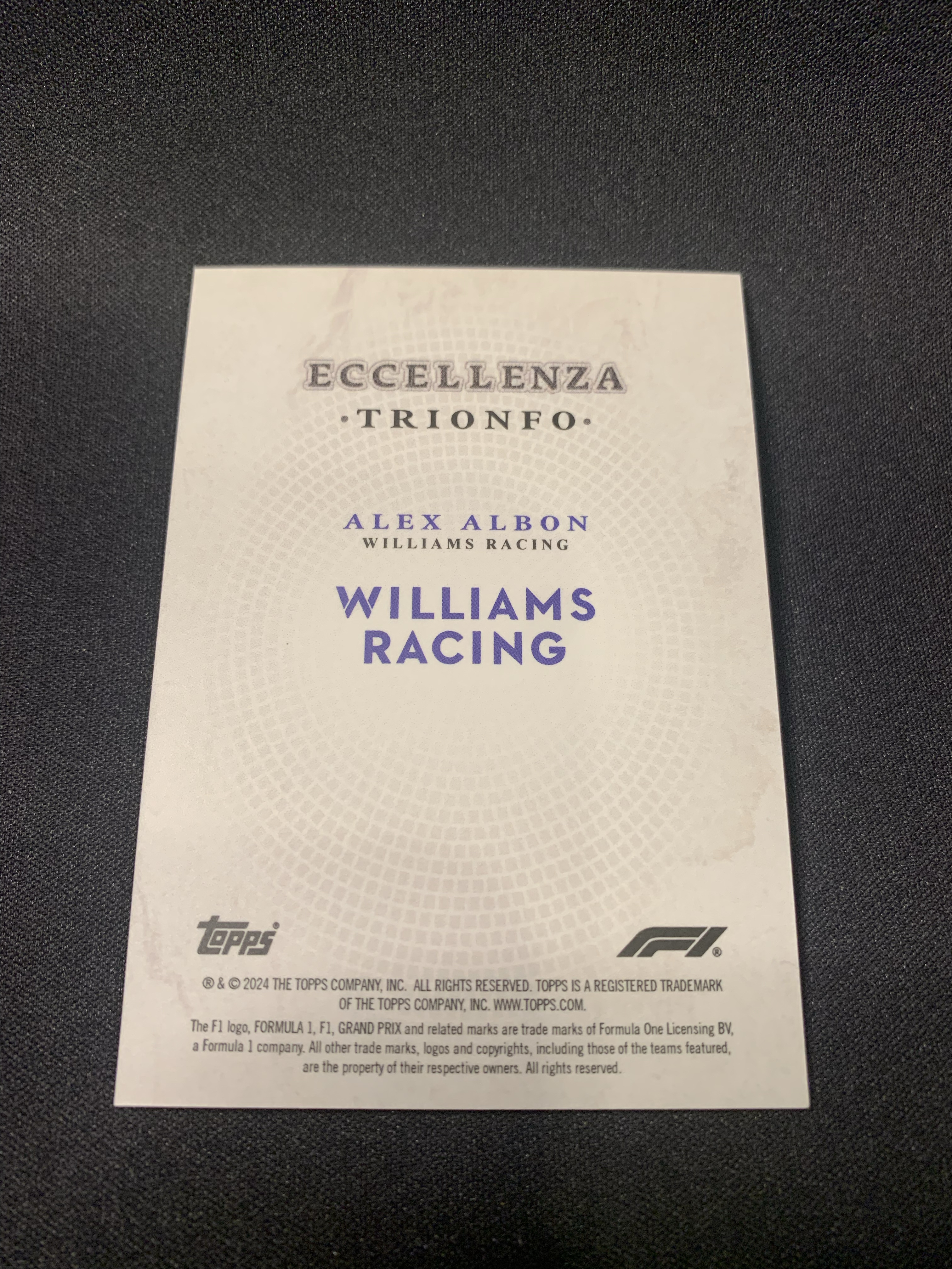2024 Topps Eccellenza Alex Albon 卓越 亚历山大 阿尔本 威廉姆斯车队 银折 盒子难寻 绝美选图 卡品如图 凑套必备