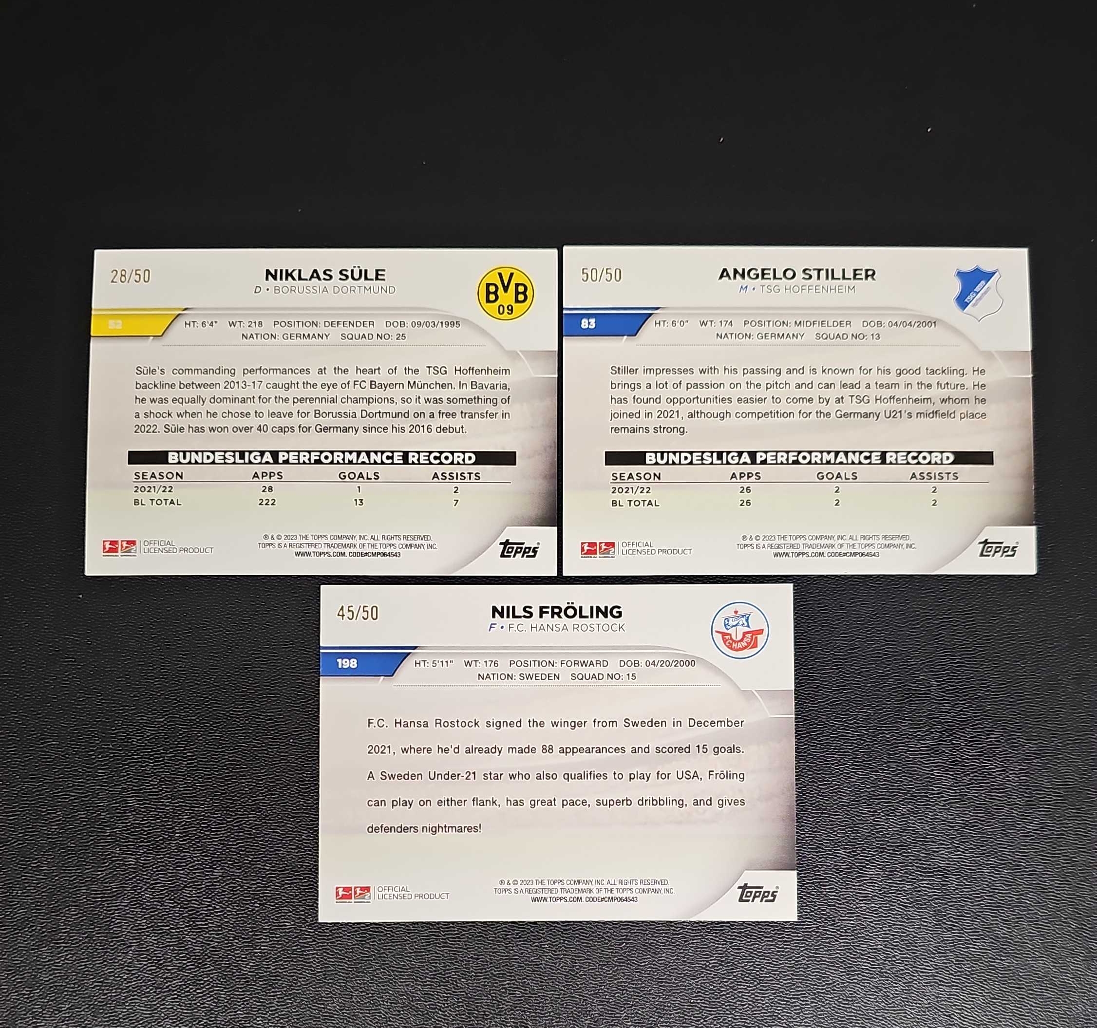 2023 Topps BUNDESLIGA Niklas Süle 【幻想代拍】德甲 碧玉 多特蒙德 霍芬海姆 聚勒 弗洛林 施蒂勒 50编 金折 三张打包lot 实卡精美 (孙哥)