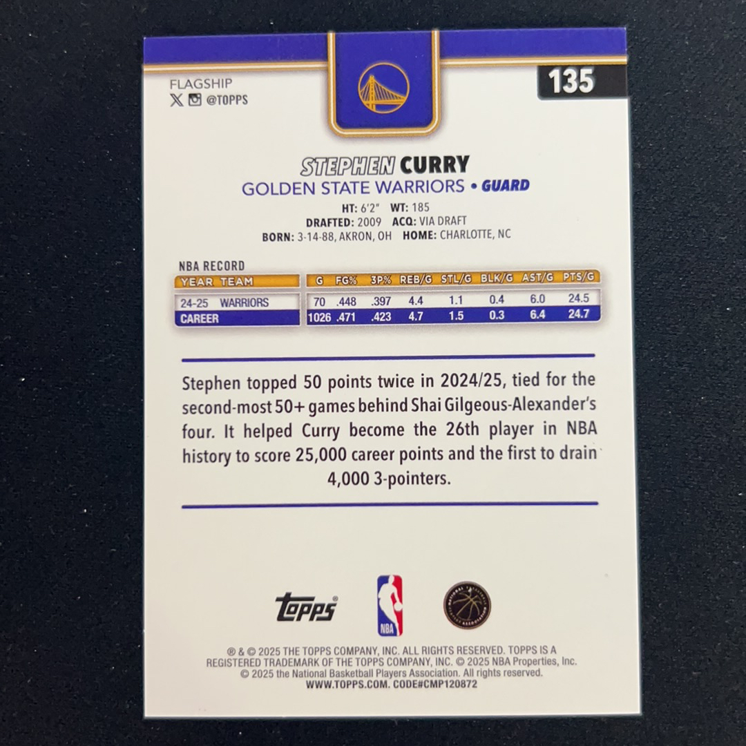 2025-26 Topps Flagship Stephen Curry 斯蒂芬库里 小学生 勇士 旗舰 20/25编 橙折 低编 折射 凑套必备