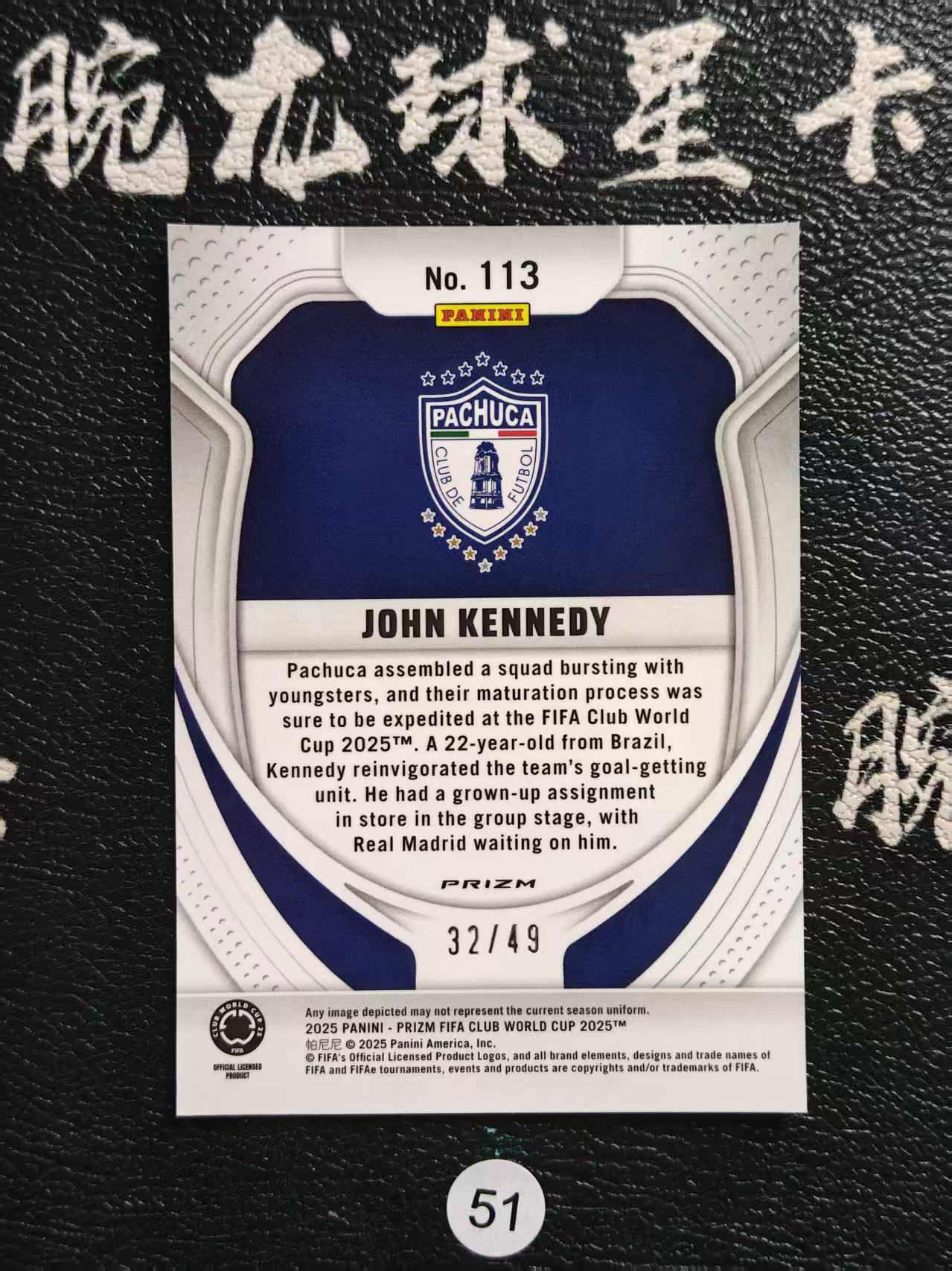 2025 【腕龙拍卖 接代卖】 腕龙夏总AN3 Panini Prizm 世俱杯 PZ 约翰 肯尼迪 帕丘卡 RC新秀 紫潘多拉折 32/49编 JOHN KENNEDY 卡品如图