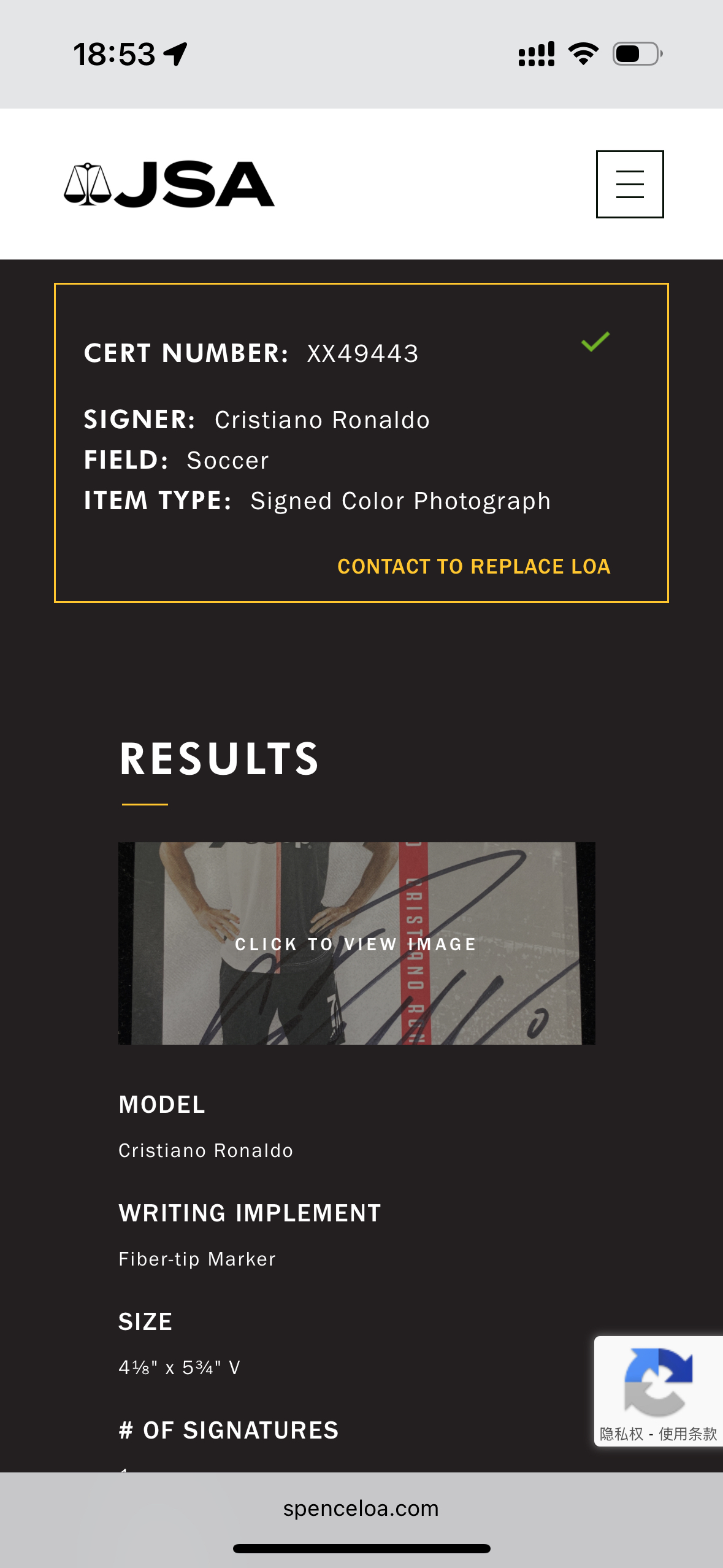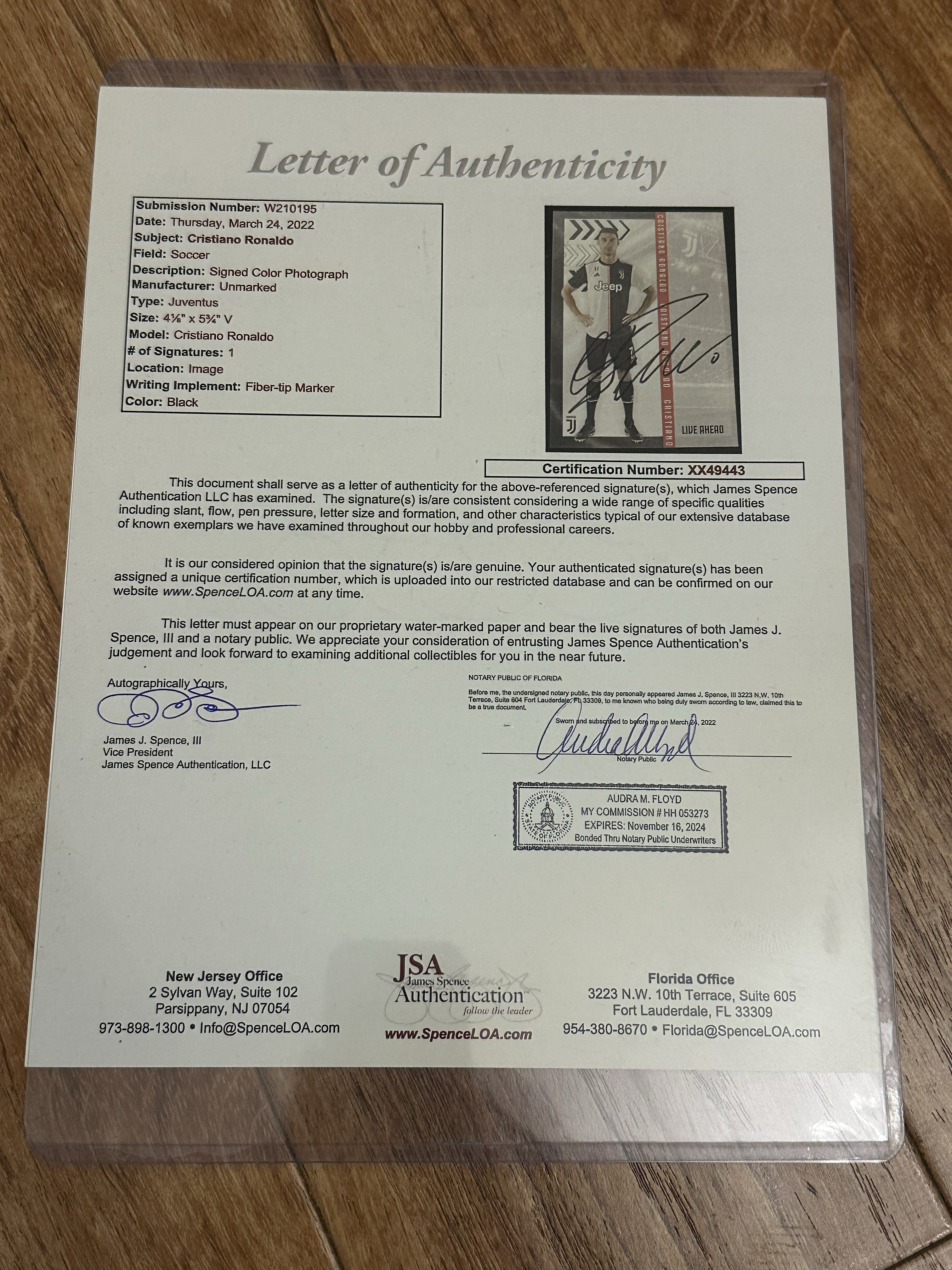 【叫板拍卖】尤文图斯队 c罗 罗纳尔多 签名明信片 亲签照片 jsa官方认证 大证书 稀有收藏 me