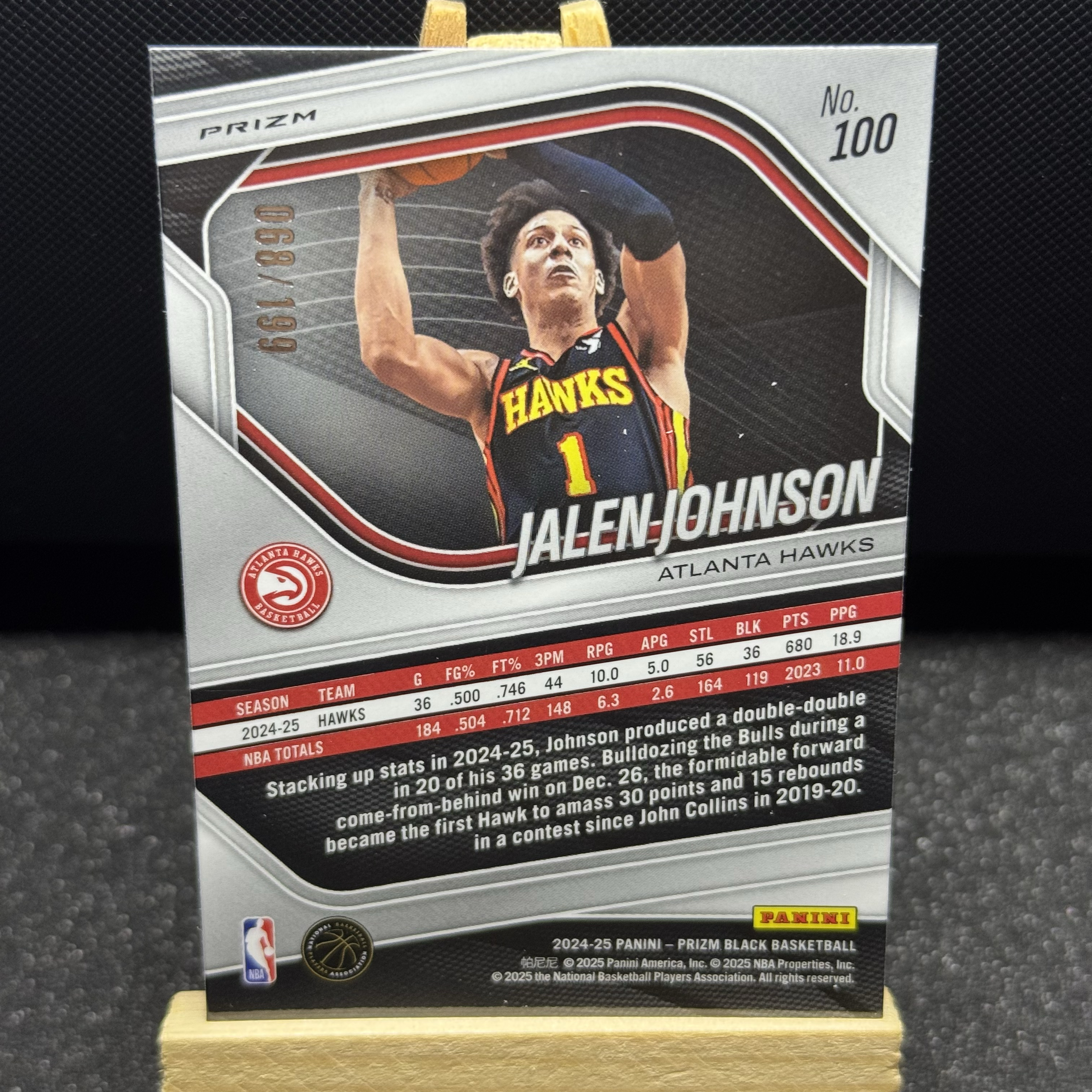 2024-25 Panini Prizm Jalen Johnson 新赛季 PZ Black 亚特兰大鹰 杰伦 约翰逊 /199编 Base 收藏必备