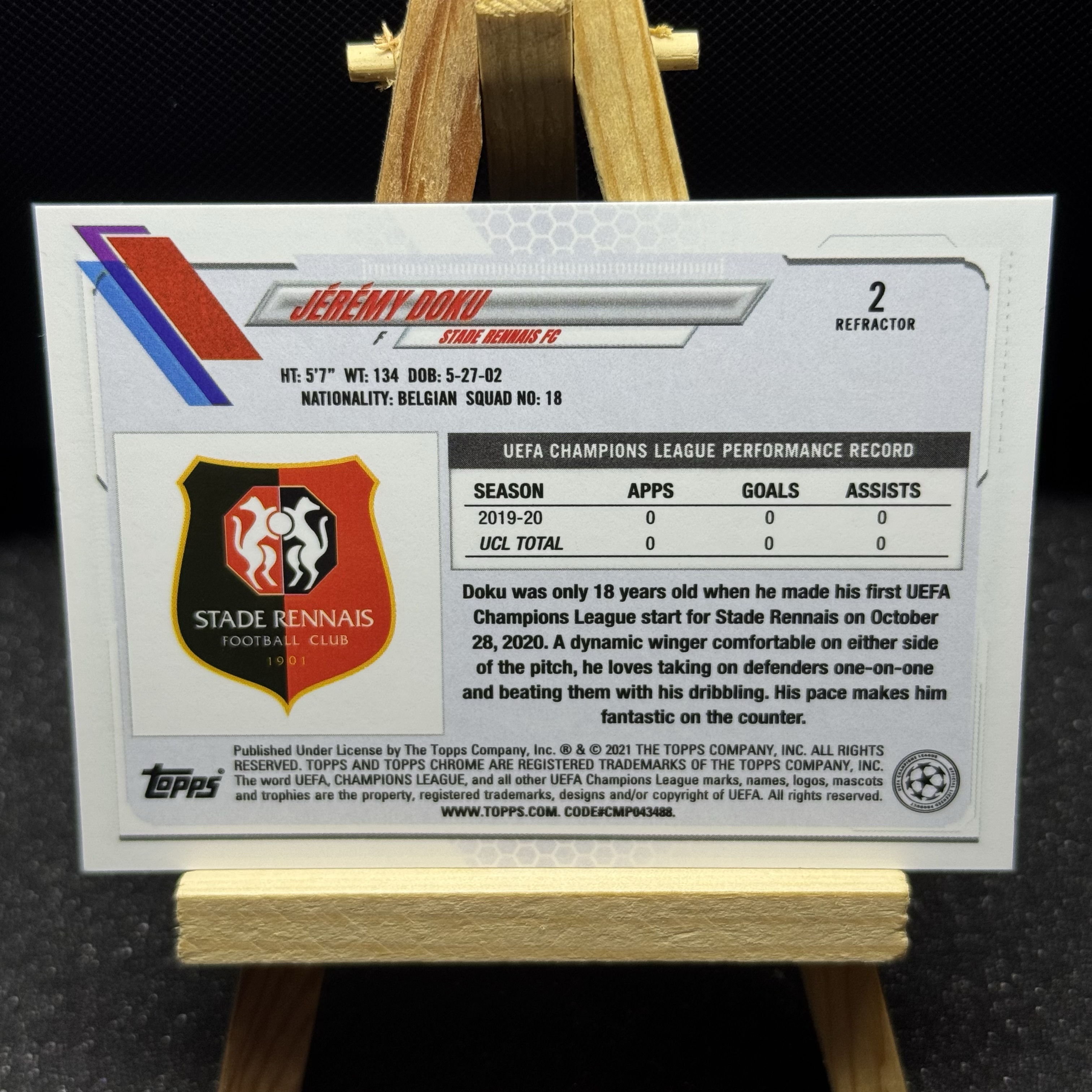 2021 Topps Chrome Jérémy Doku RC 欧战 欧冠 TC 曼城 多库 新秀Base 正系列 正银折 收藏必备