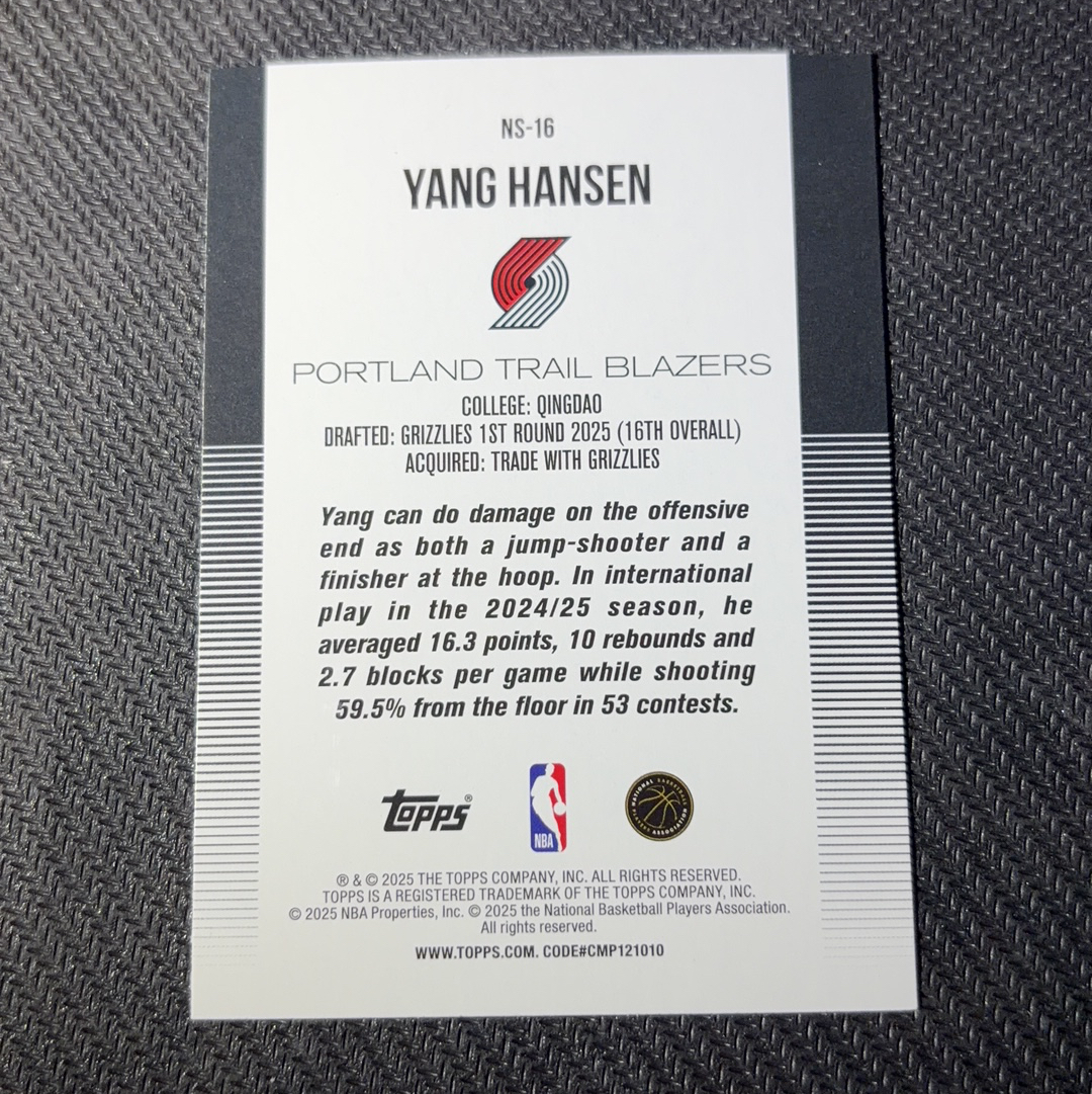 2025 Topps company 杨瀚森 RC 开拓者 new school 新秀 特卡 红折 折射 国人骄傲 实卡精美 收藏必备 专收 凑套 卡品如图 未来可期