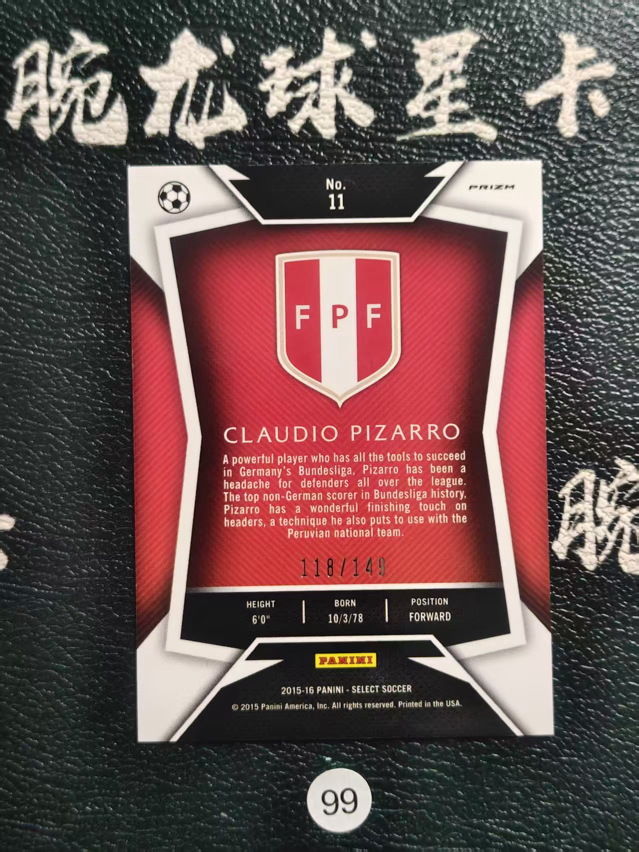 2015-16 【腕龙拍卖 接代卖】 腕龙茹泽群AO8 Panini Select 元年 皮萨罗 秘鲁 橙折 118/149编 CLAUDIO PIZARRO 卡品如图 收藏必备
