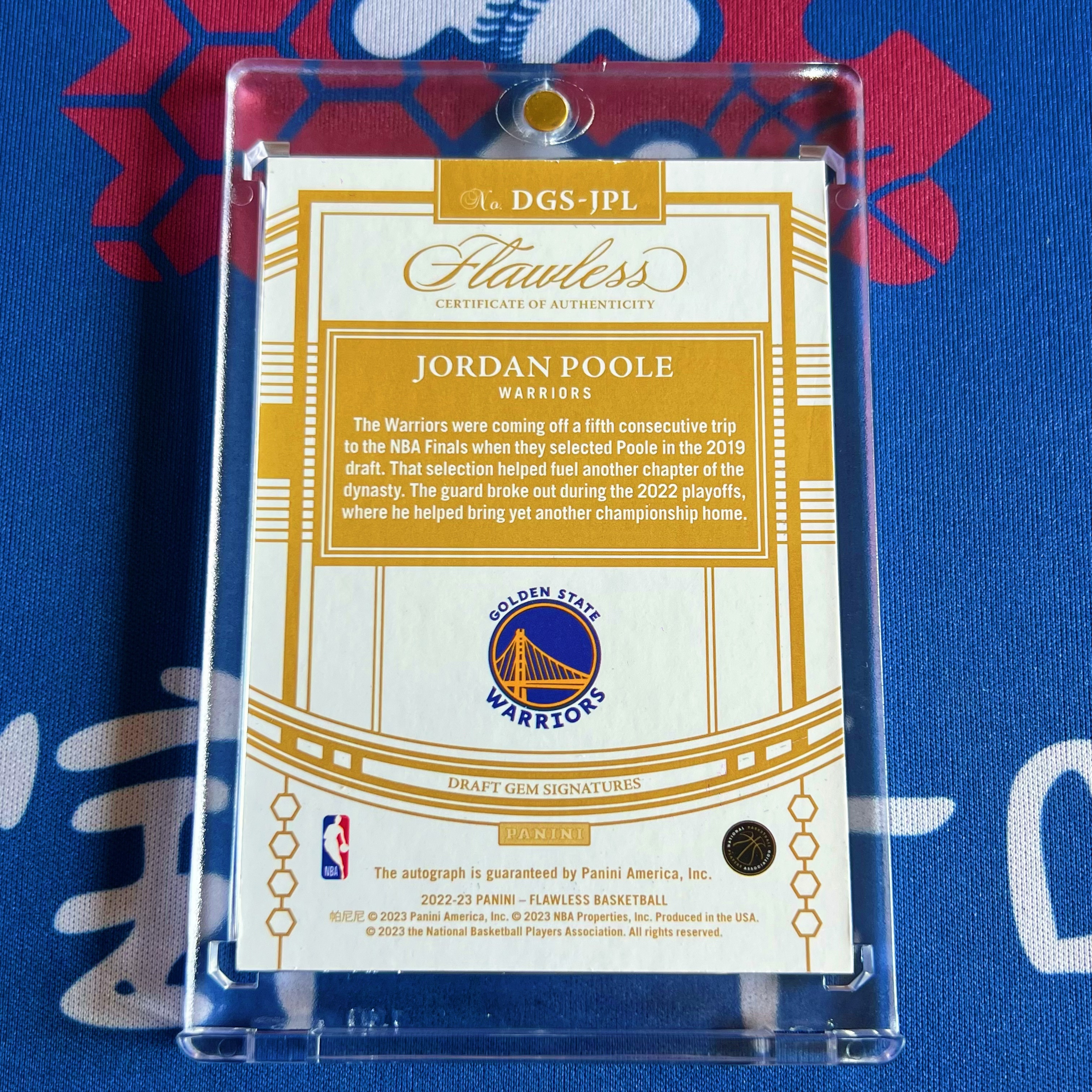 2022-23 Panini Flawless Jordan Poole 【海宝】手提 勇士 乔丹普尔 1/1编 1of1 一编一 湖水蓝闪 新秀选图 选秀签字卡 卡签 边印见图 未来可期【KFC】