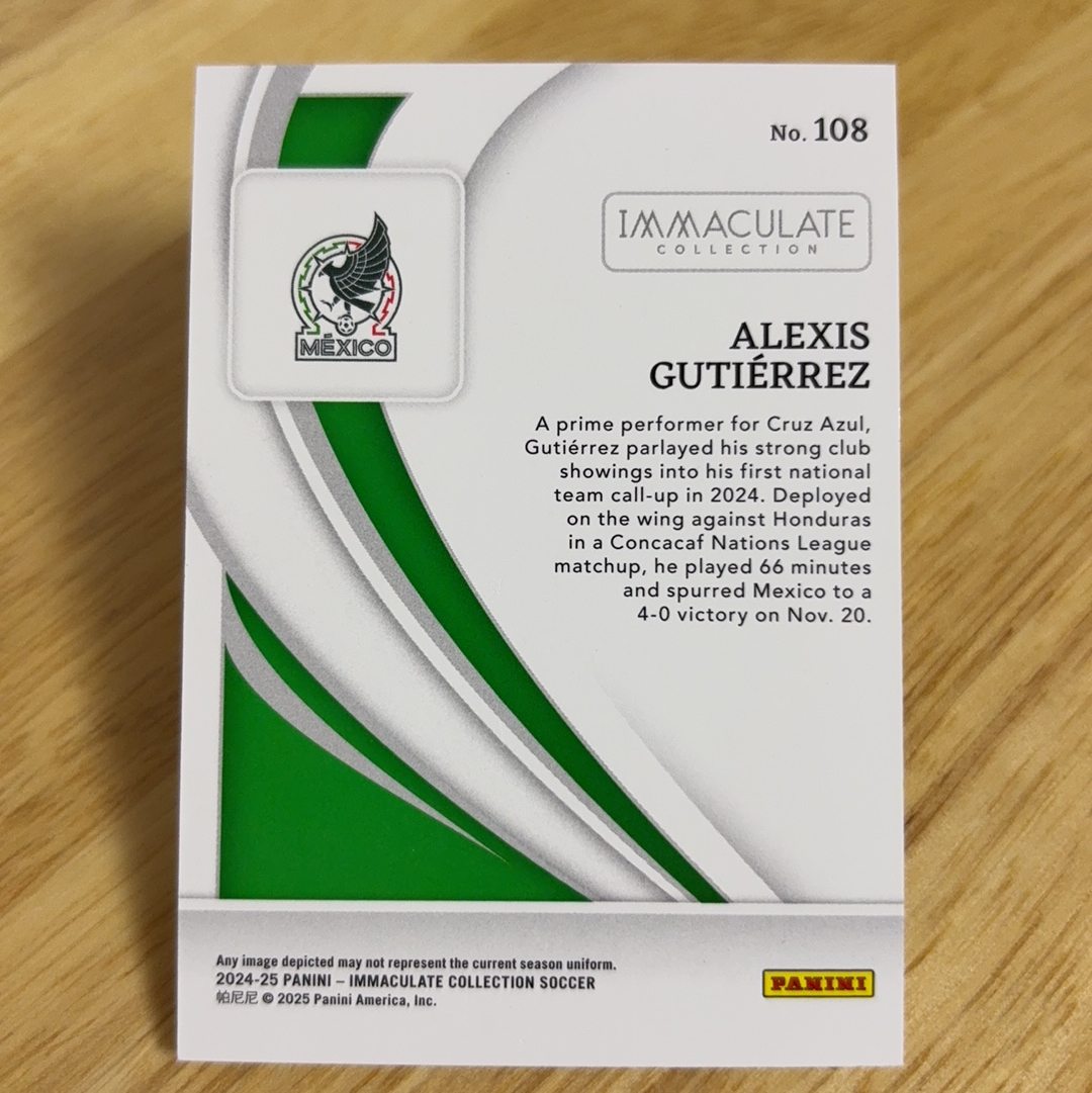 【风速狗】2024-25 Panini Immaculate 爱咪咪 Alexis Gutierrez 古铁雷斯 墨西哥 国家队 1/1编 一编 新秀RC 1of 1 轻印如图 nana