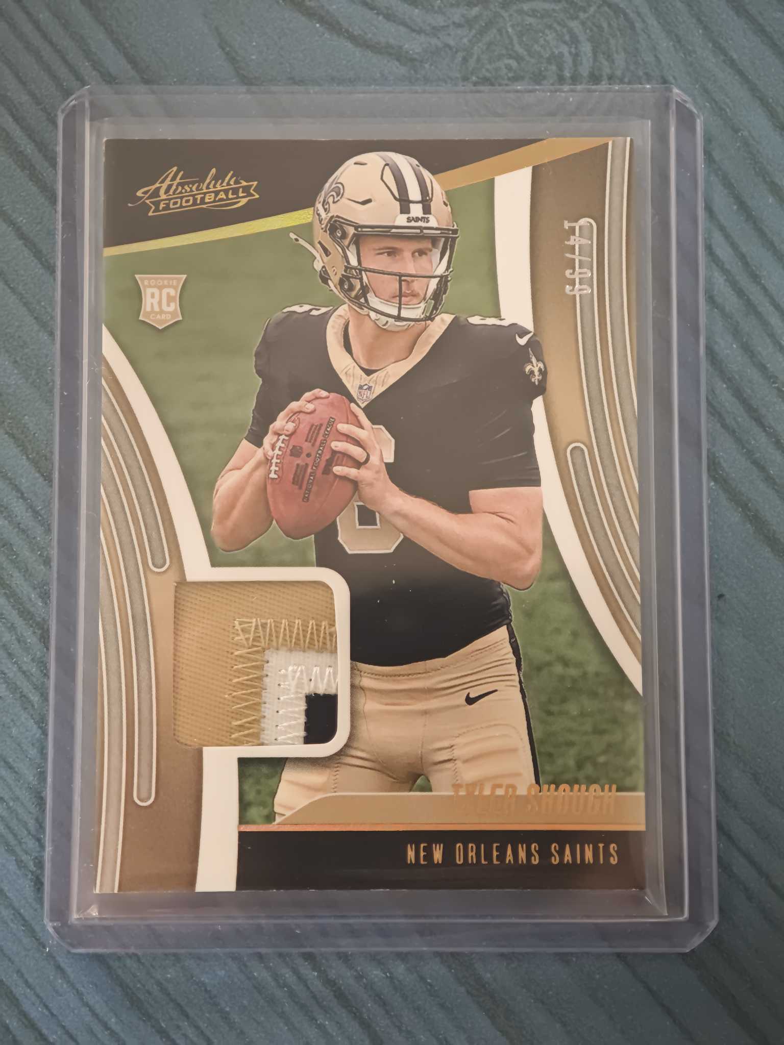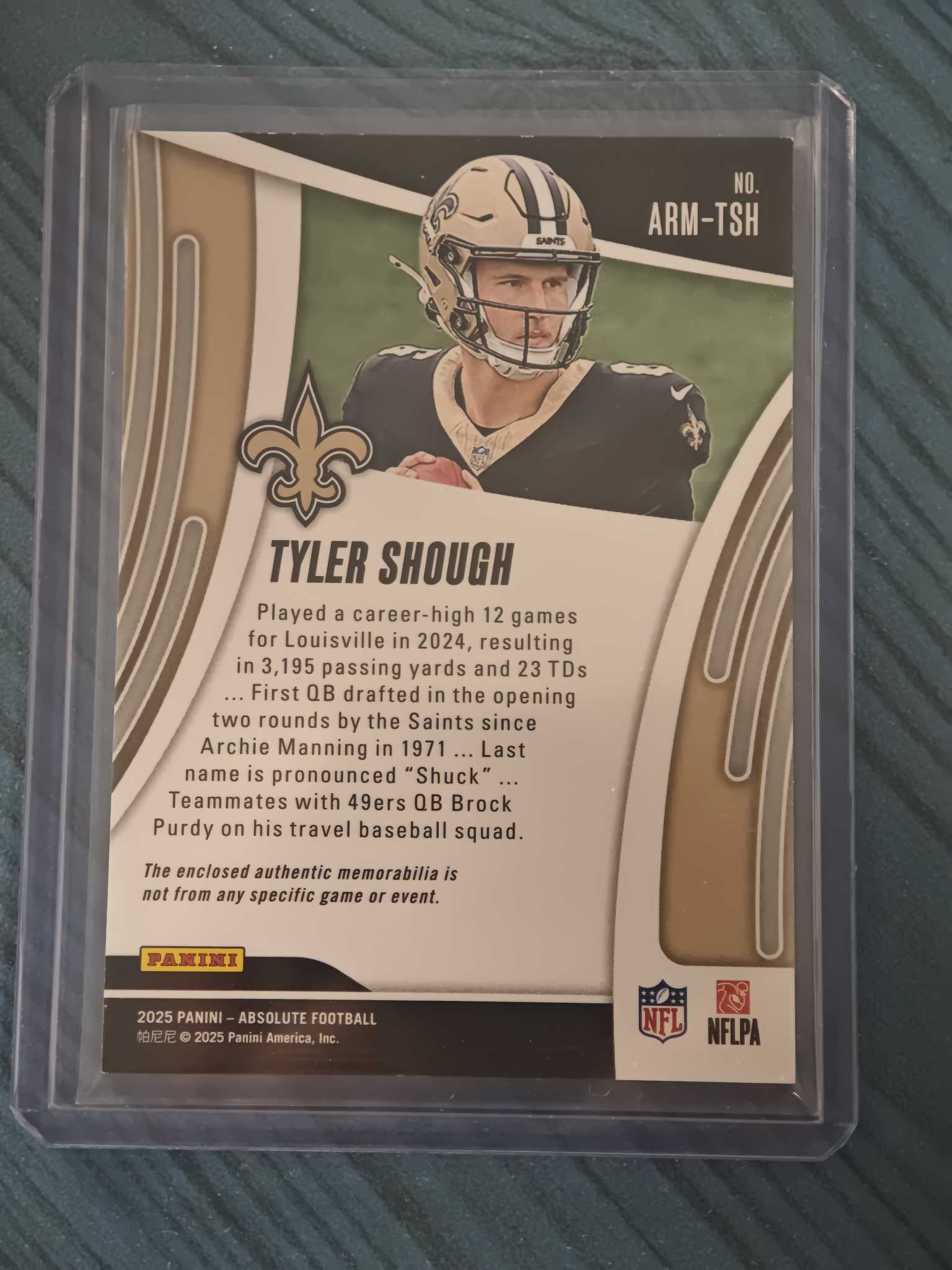 2025 Panini Absolute tyler shough RC 橄榄球 新奥尔良圣徒 Tyler Shough 泰勒 肖 新秀 首发 四分卫 14/99编 暴力切割 物料 三色patch