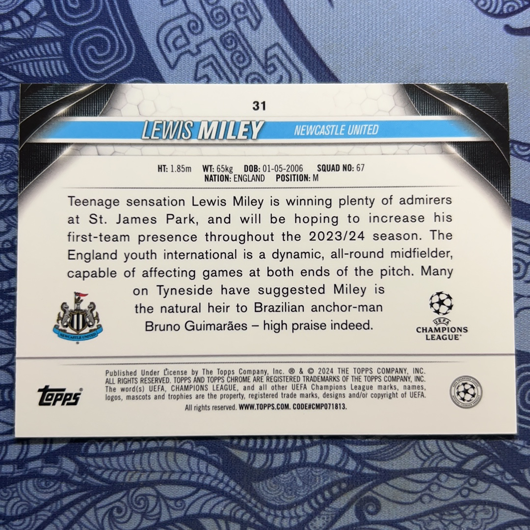 2023 Topps chrome Lewis Miley RC 英超 纽卡斯尔 英格兰 新秀 刘易斯 米利 麦利 43/52编 低编 Topps折 折射 硬卡 卡品如图 收藏必备 未来可期 必涨