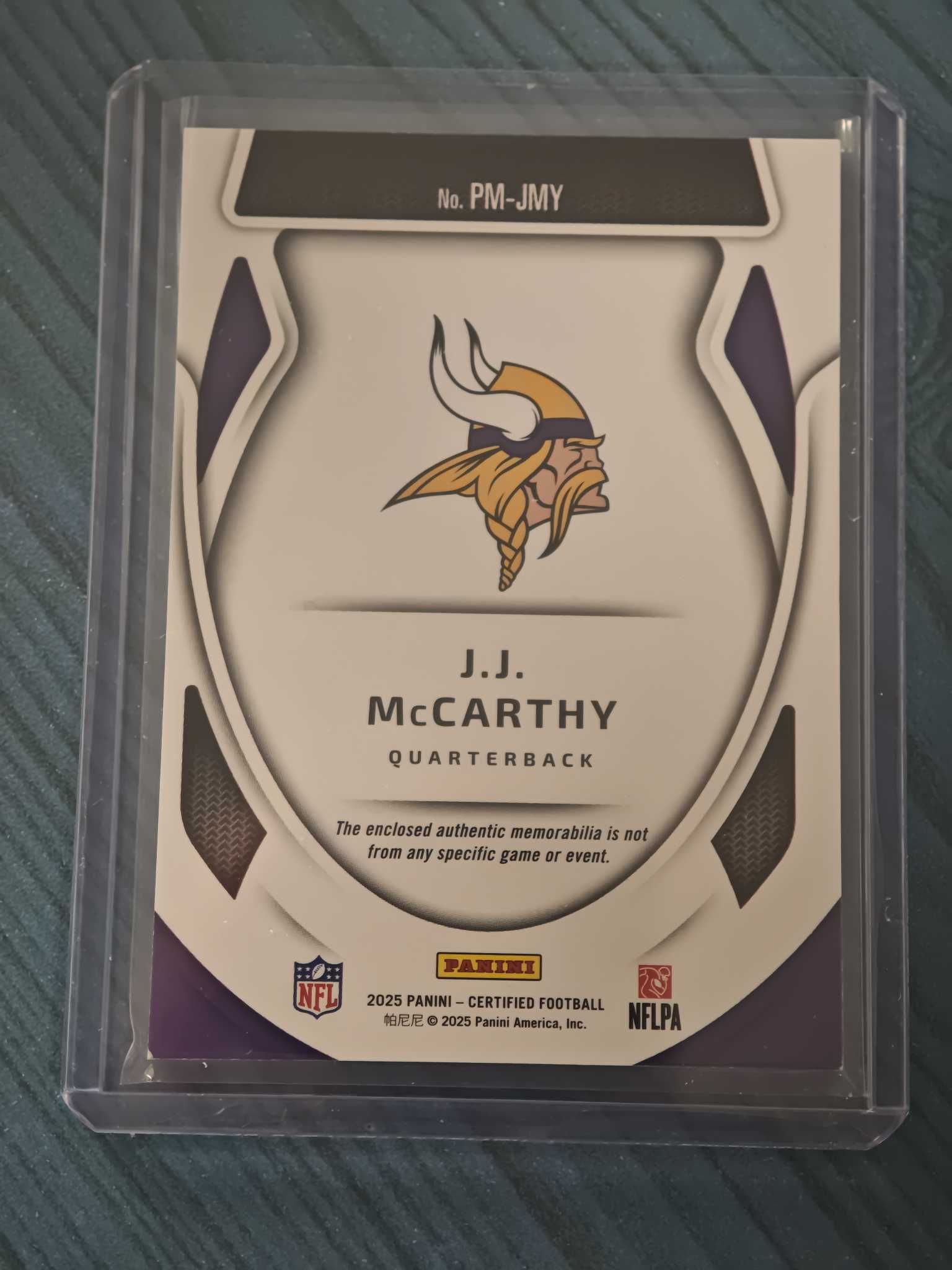 2025 Panini Absolute JJ McCarthy JJ 麦卡锡 Mccarthy 82/99编 大窗 球衣 物料 维京人 四分卫