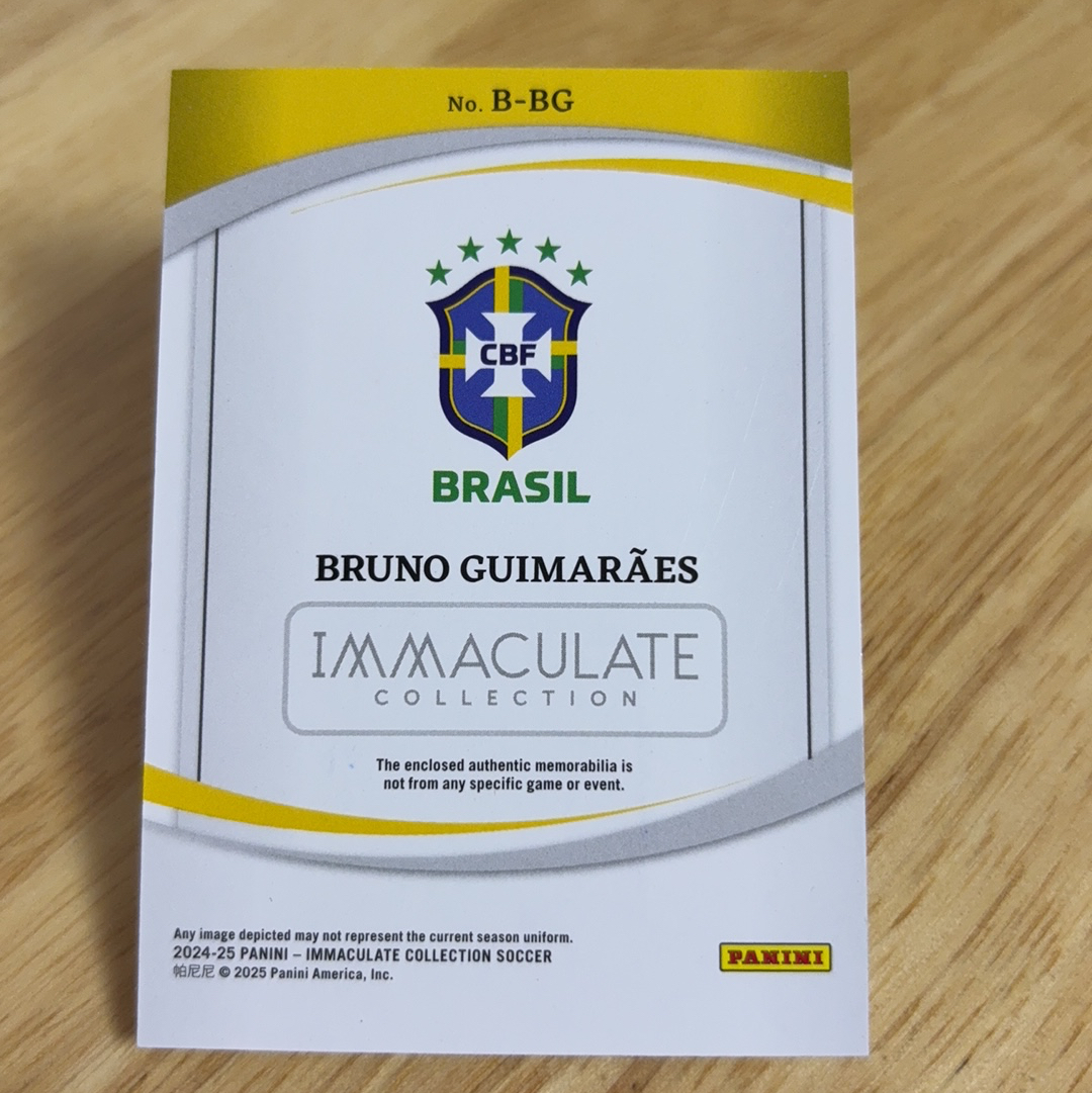 【风速狗】2024-25 Panini Immaculate 爱咪咪 巴西 Bruno Guimaraes 布鲁诺吉马良斯 49/49编 球衣物料 瑕疵如图 nana