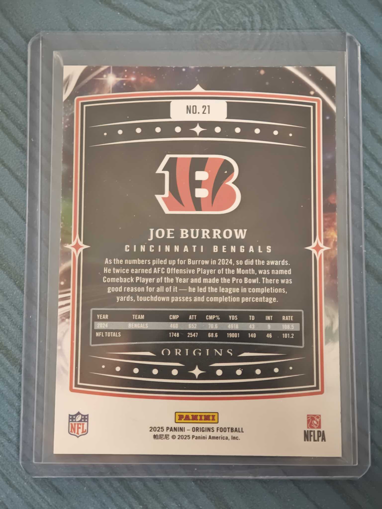 2025 Panini Origins Joe Burrow NFL橄榄球 起源 辛辛那提猛虎 四分卫 乔 伯罗 039/225编 红折