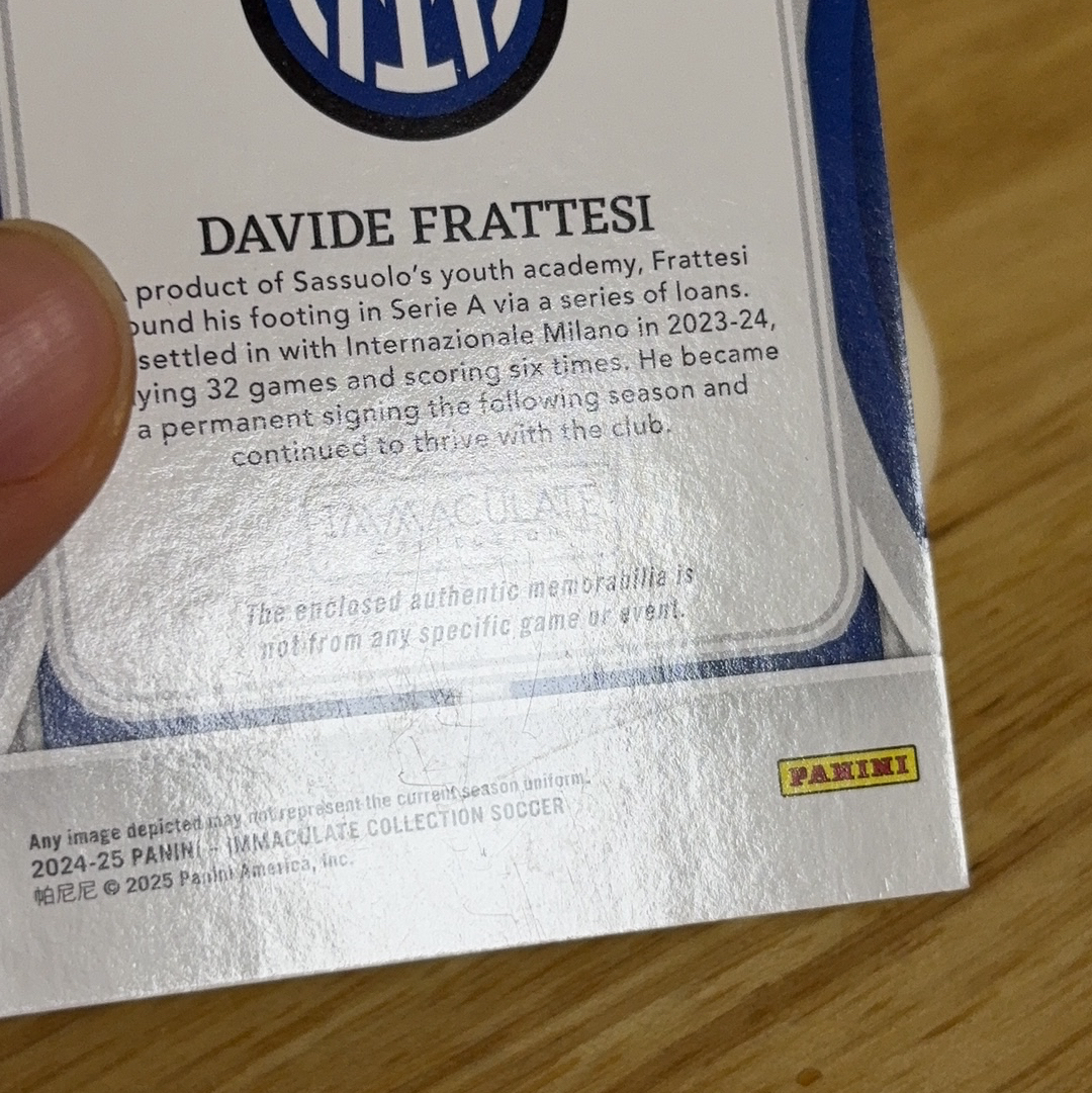 【风速狗】2024-25 Panini Immaculate 爱咪咪 Davide Frattesi 弗拉泰西 意大利 65/75编 球衣物料 细节微瑕 nana