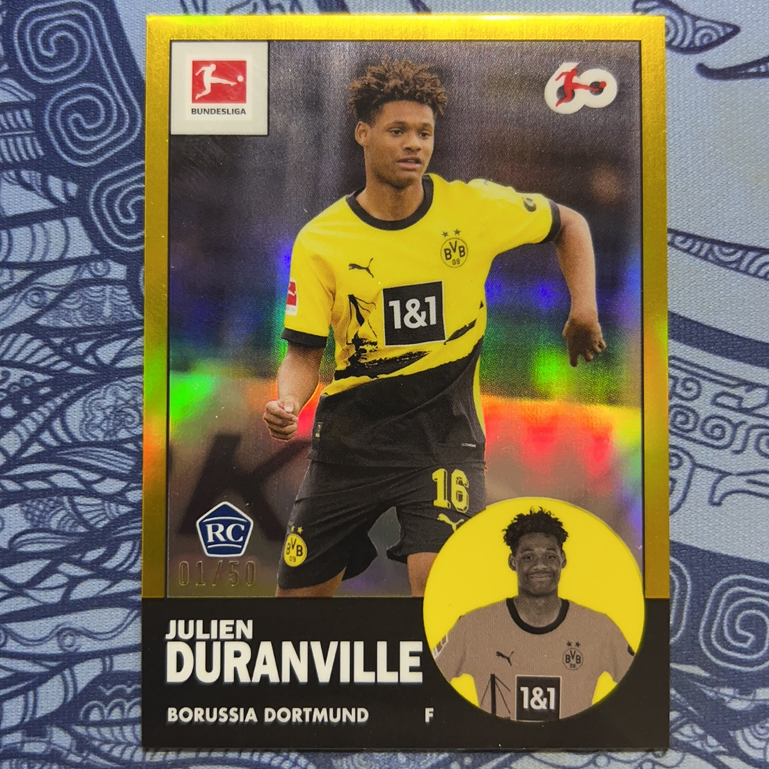 2024 Topps Chrome 杜兰维尔 RC Duranville 新秀 多特蒙德 德甲 01/50编 首编 低编 金折 折射 德甲60周年 复古 卡品如图 收藏专收必备 未来可期