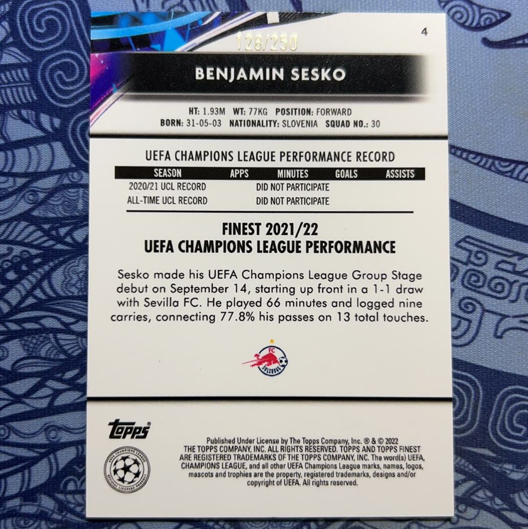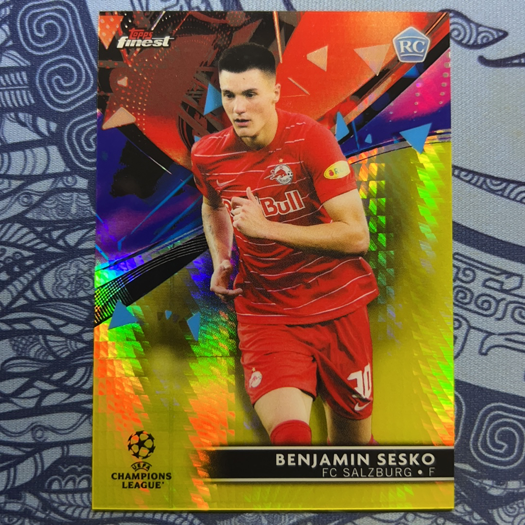 2022 Topps Finest Benjamin Sesko RC 欧冠 本杰明 塞斯科 谢什科 舍什科 萨尔茨红牛 曼联 新秀 金脉冲折 250编 大热中锋 豪门猎物 卡品如图 顶级前锋状态火热