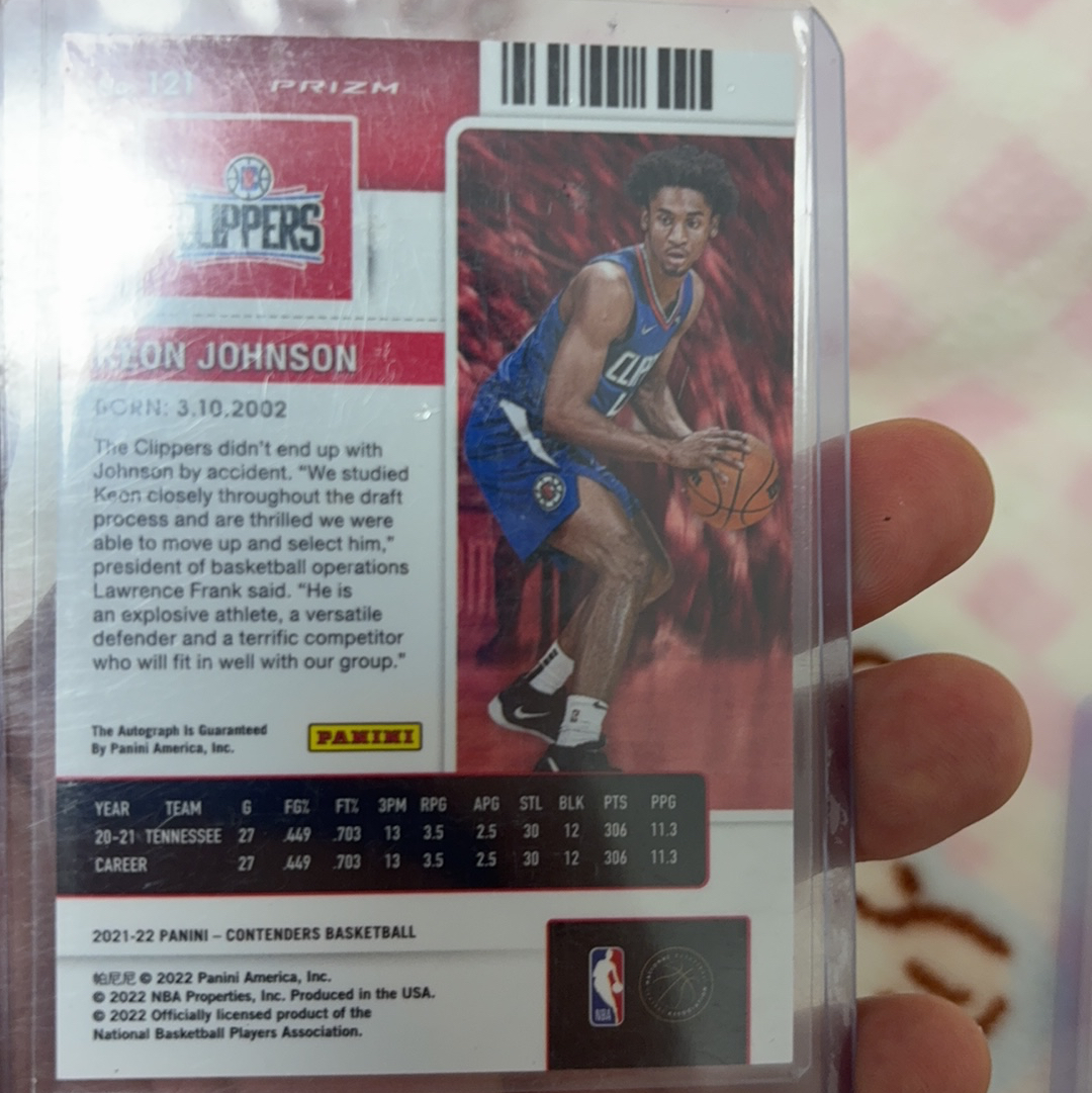 2021-22 Panini Contenders Optic Keon Johnson RC 银折 开拓者 基翁 基恩 约翰逊 新秀 球票 签字 卡签 介绍签 专收必备