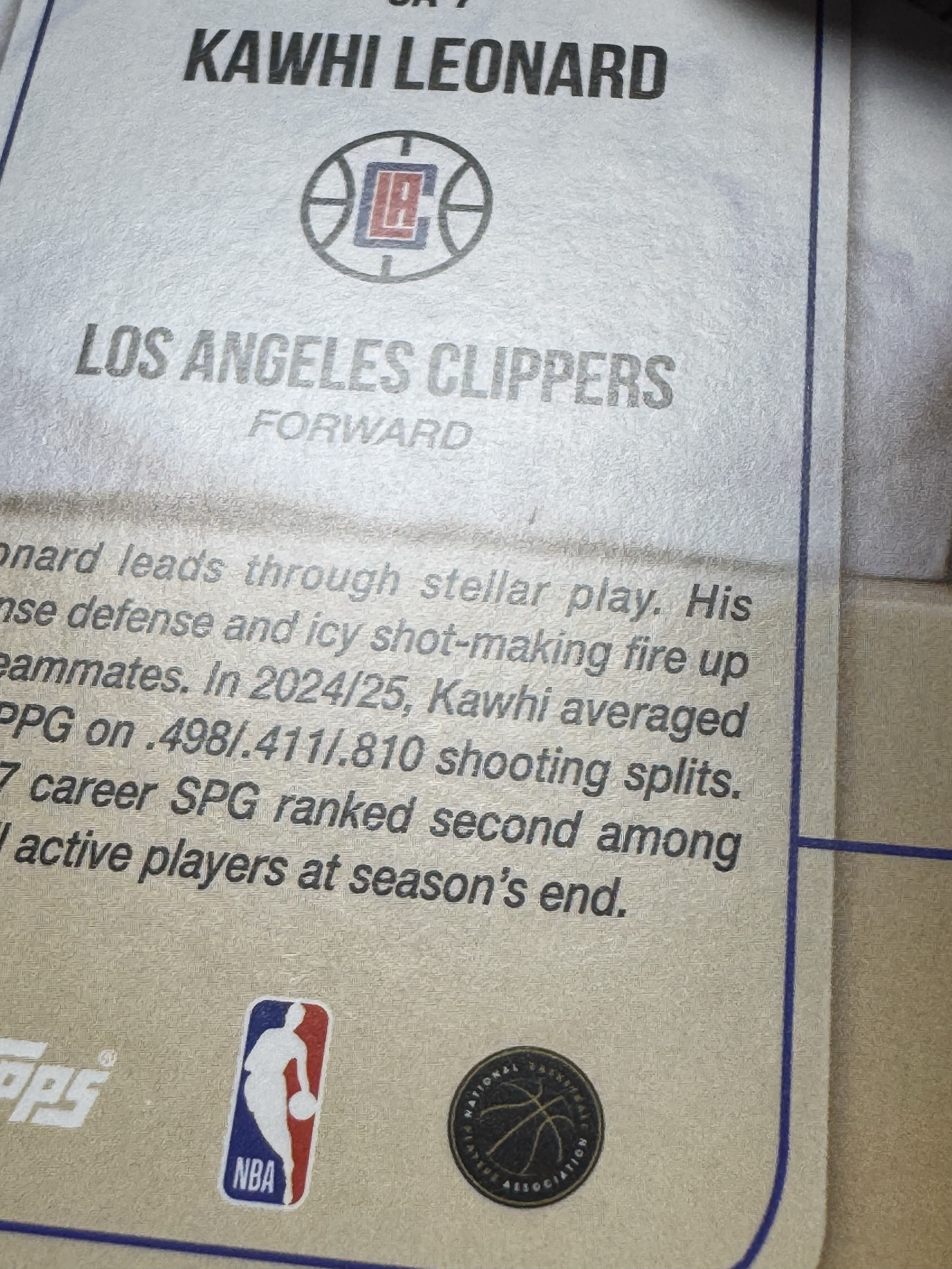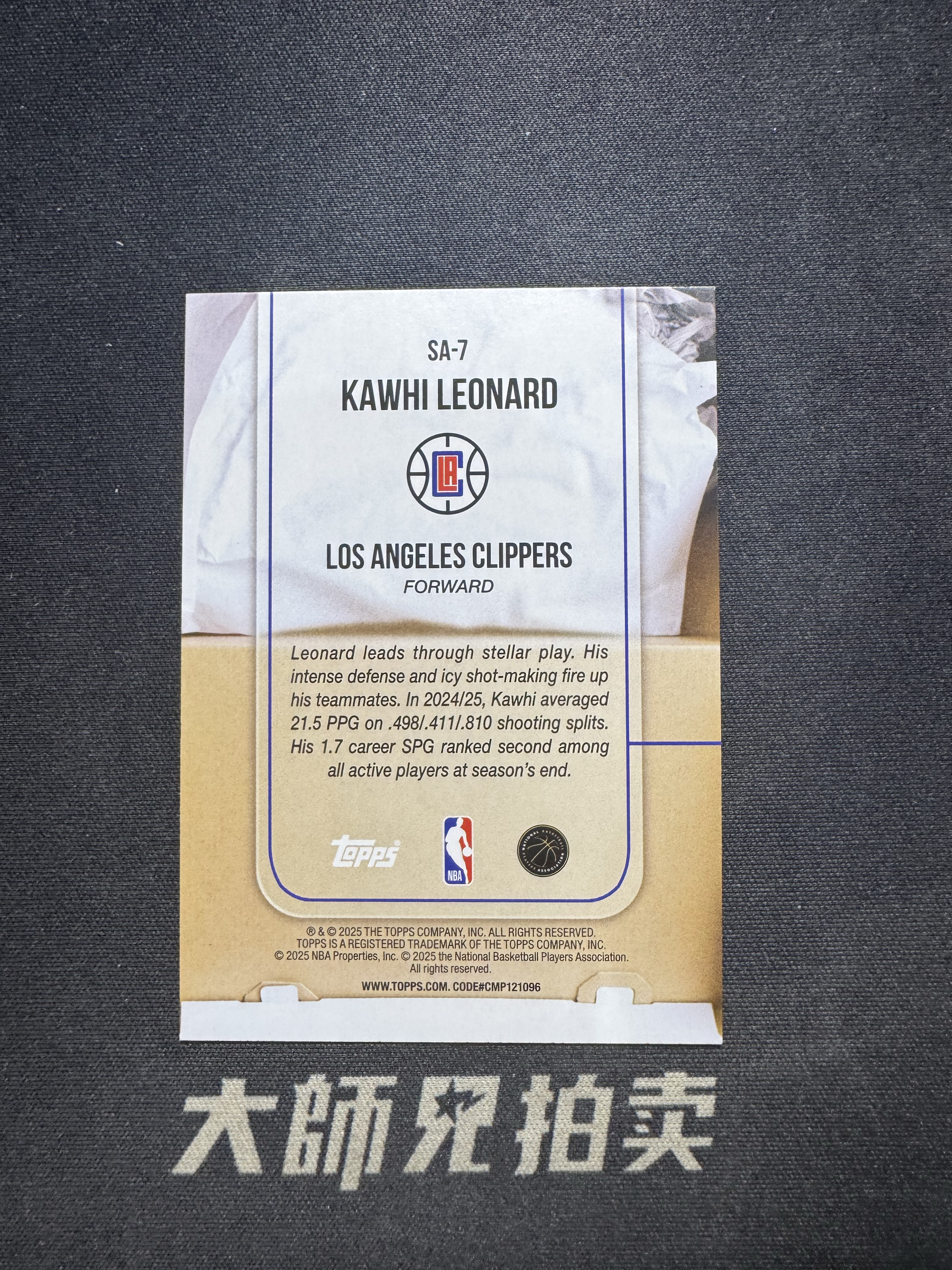 【大师兄拍卖】2025 Topps Flagship Kawhi Leonard 科怀 伦纳德 快船 鞋底数据特卡 sole ambition特卡 大比例 ssp mega独占 瑕疵看图-7ack梁-