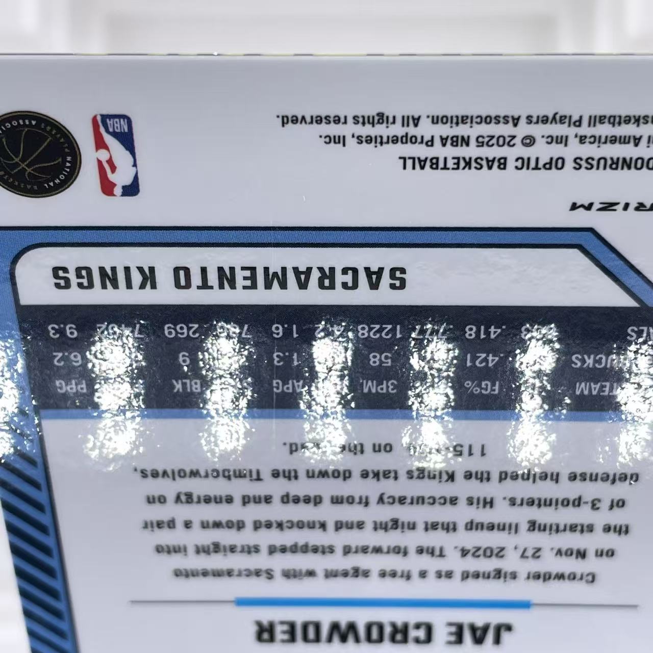 这一项十分重要!!!所有卡片为高清实拍图,劳烦仔细看图!!!有什么需要不清楚的可以联系客服,可以为您单独拍摄卡片额外细节;一旦出价默认接受卡品(不接受一系列没拍特写,自己没看仔细不想要等理由退换货)如无图片特殊展示瑕疵均为通行品相,一般prizm optic 等系列薄卡的小划痕印刷线,国宝IMM等系列厚卡的小白边小白角翘角钝角等,都属于通行品相。完美主义者请直接购买PSA10或者公博金标,发货之后不退不换(购卡的买家拆快递的时候也请拍开箱视频以便维护自己的权益)。描述如没有注明均不含卡砖(需要请与站内沟通)。