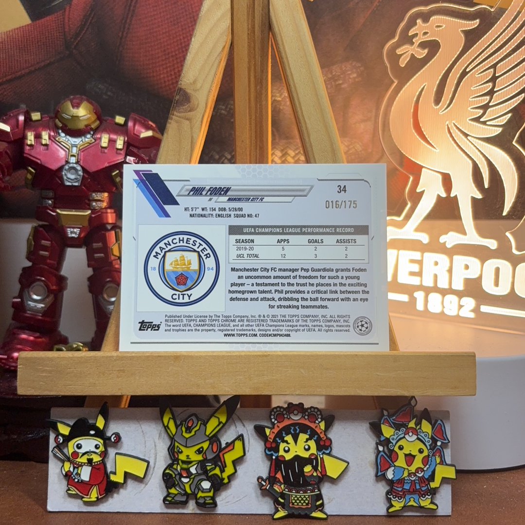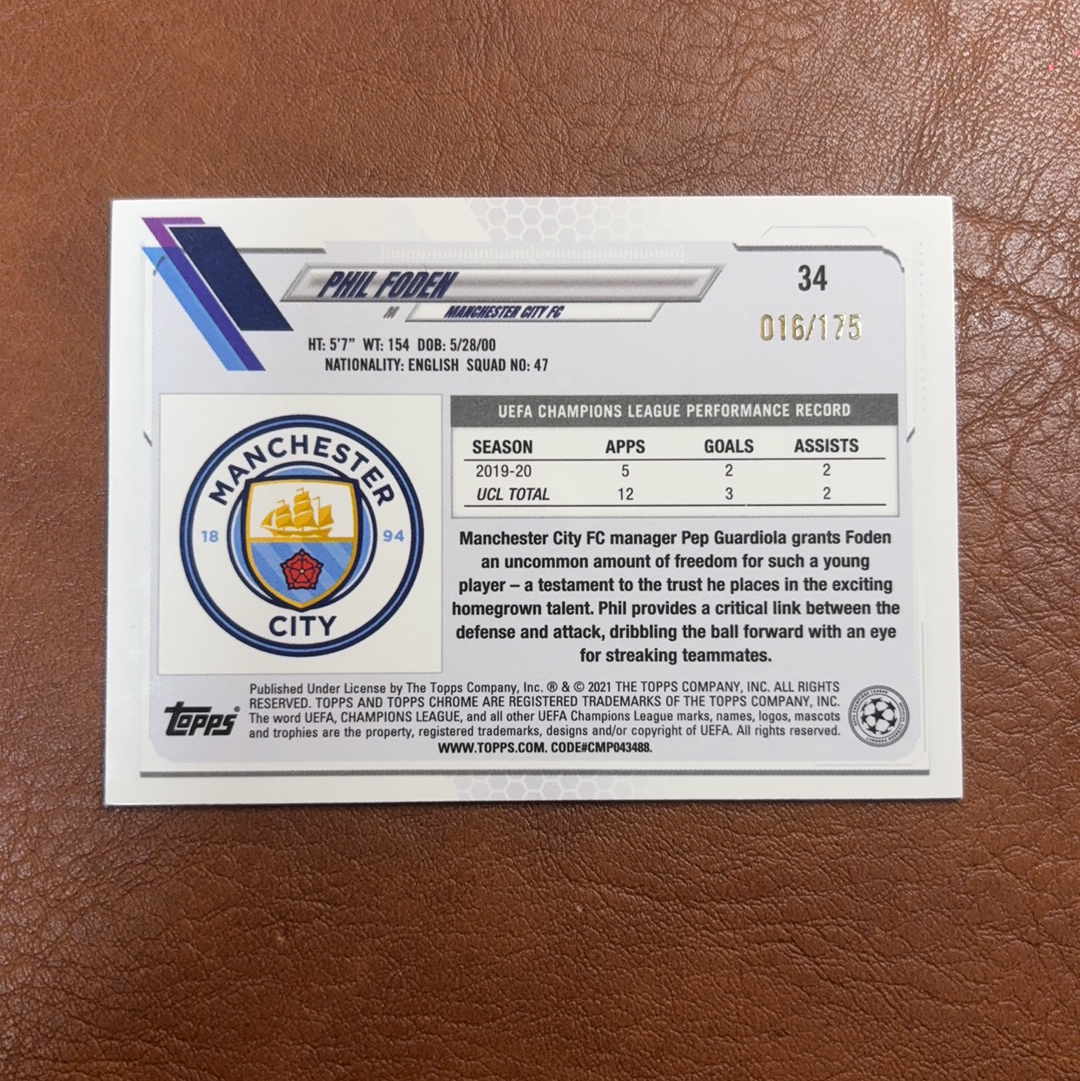 2021 Topps Chrome Phil Foden 【耳朵拍卖】TC 曼城 福登 英格兰 欧冠 粉折 折射 175编 收藏必入 枫叶