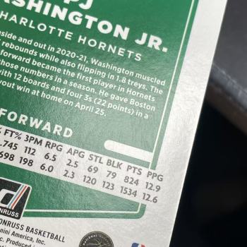 这一项十分重要!!!所有卡片为高清实拍图,劳烦仔细看图!!!有什么需要不清楚的可以联系客服,可以为您单独拍摄卡片额外细节;一旦出价默认接受卡品(不接受一系列没拍特写,自己没看仔细不想要等理由退换货)如无图片特殊展示瑕疵均为通行品相,一般prizm optic 等系列薄卡的小划痕印刷线,国宝IMM等系列厚卡的小白边小白角翘角钝角等,都属于通行品相。完美主义者请直接购买PSA10或者公博金标,发货之后不退不换(购卡的买家拆快递的时候也请拍开箱视频以便维护自己的权益)。描述如没有注明均不含卡砖(需要请与站内沟通)。
