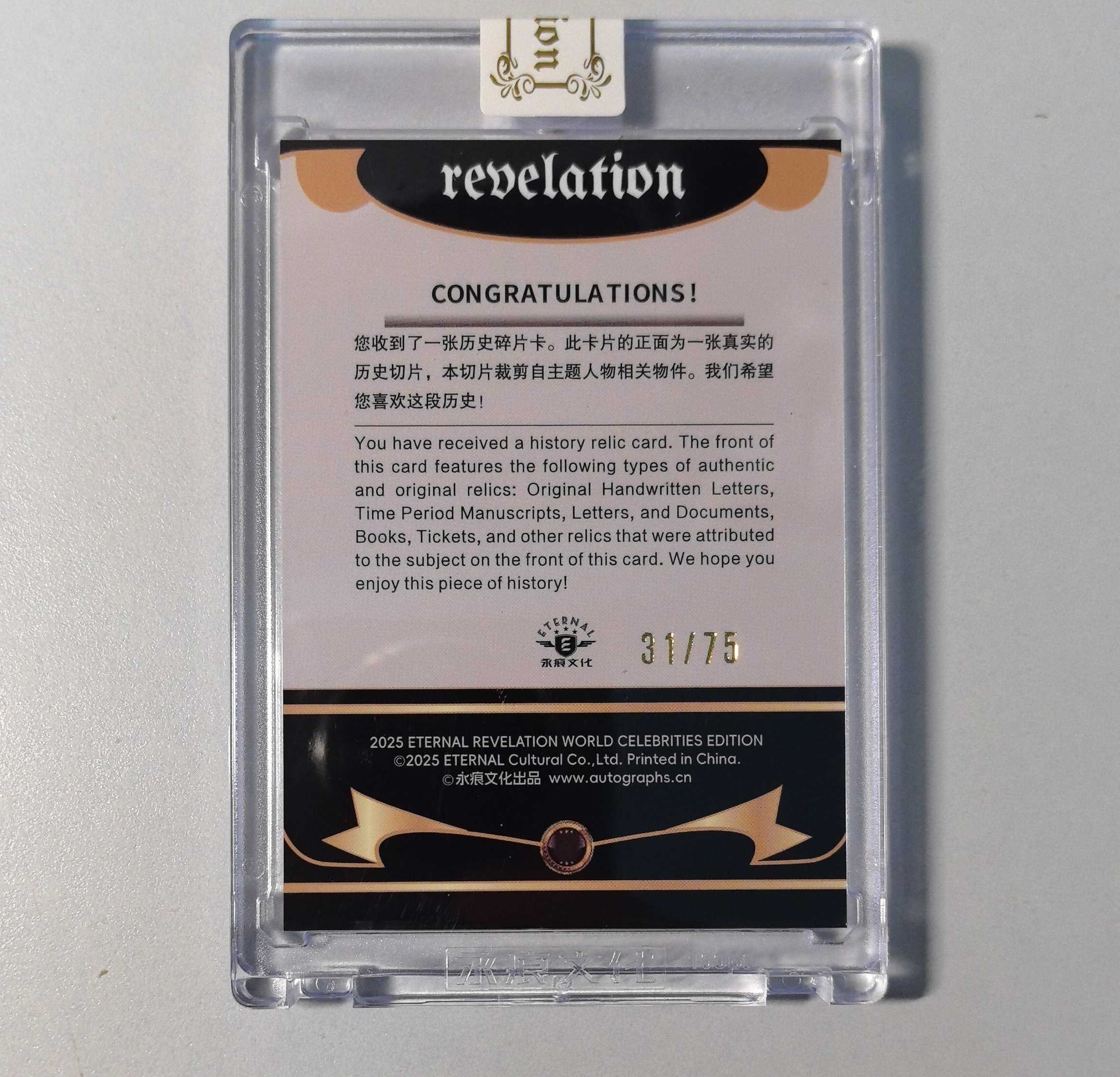 2025 Other 永痕文化 【锡安代卖】 Revelation 世界名人实物收藏卡 相关实物切割 75编蓝折 伽利略 卡品如图 霓虹