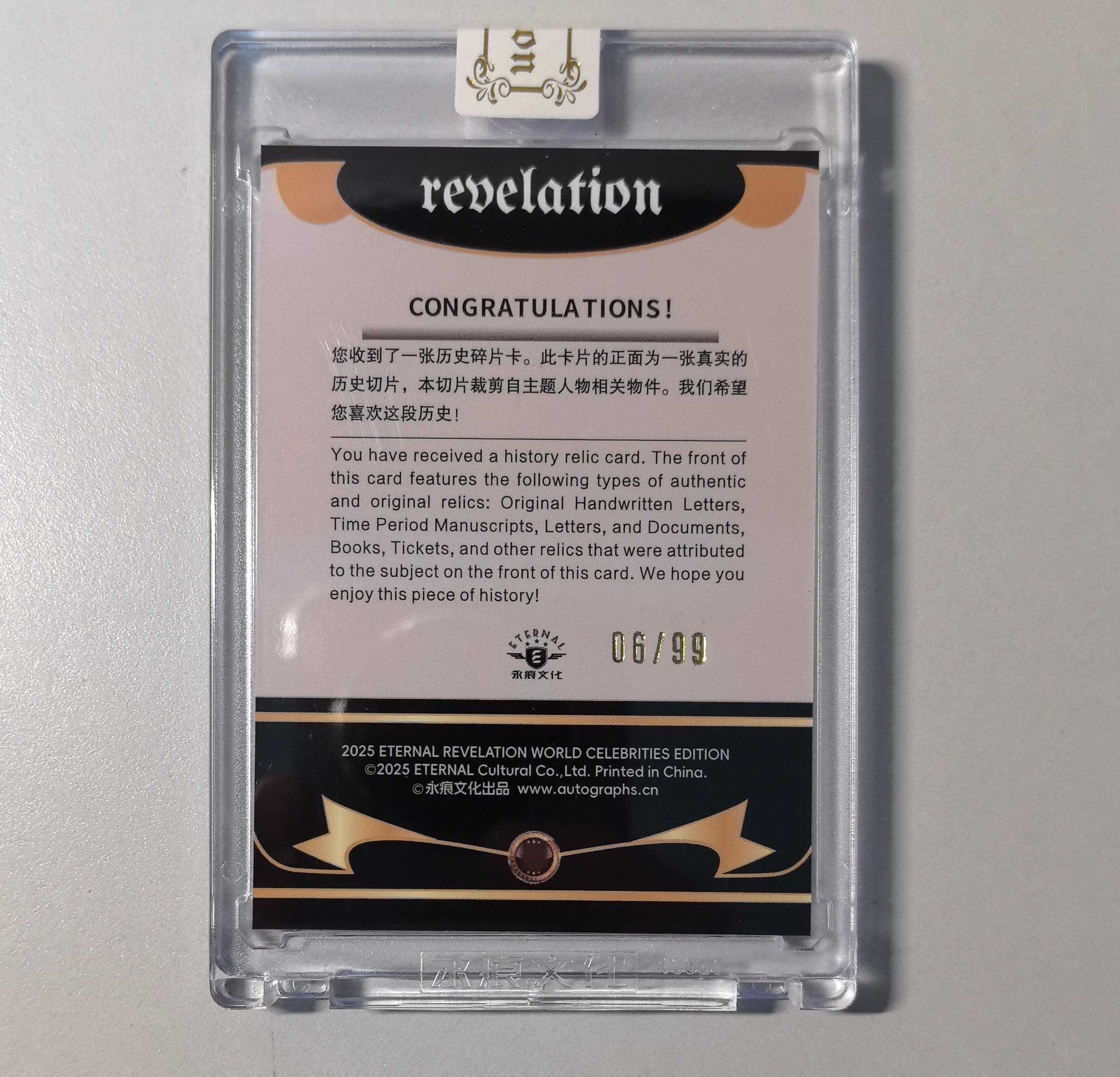 2025 Other 永痕文化 【锡安代卖】 Revelation 世界名人实物收藏卡 相关实物切割 99编铜折 爱迪生 卡品如图 霓虹