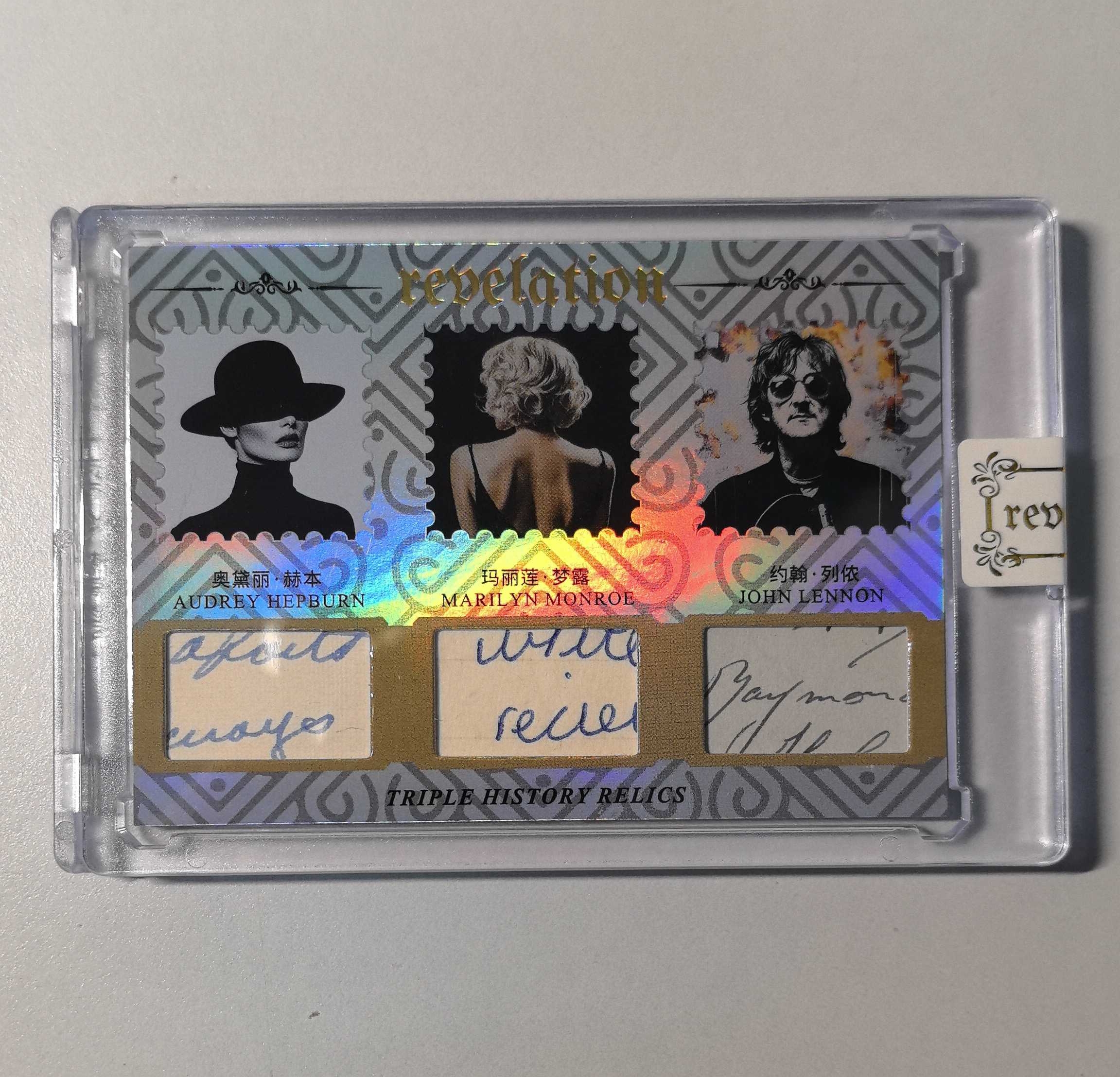 2025 Other 永痕文化 【锡安代卖】 Revelation 世界名人实物收藏卡 相关实物切割 50编银折 三人 奥黛丽赫本 玛丽莲梦露 约翰列侬 卡品如图 霓虹