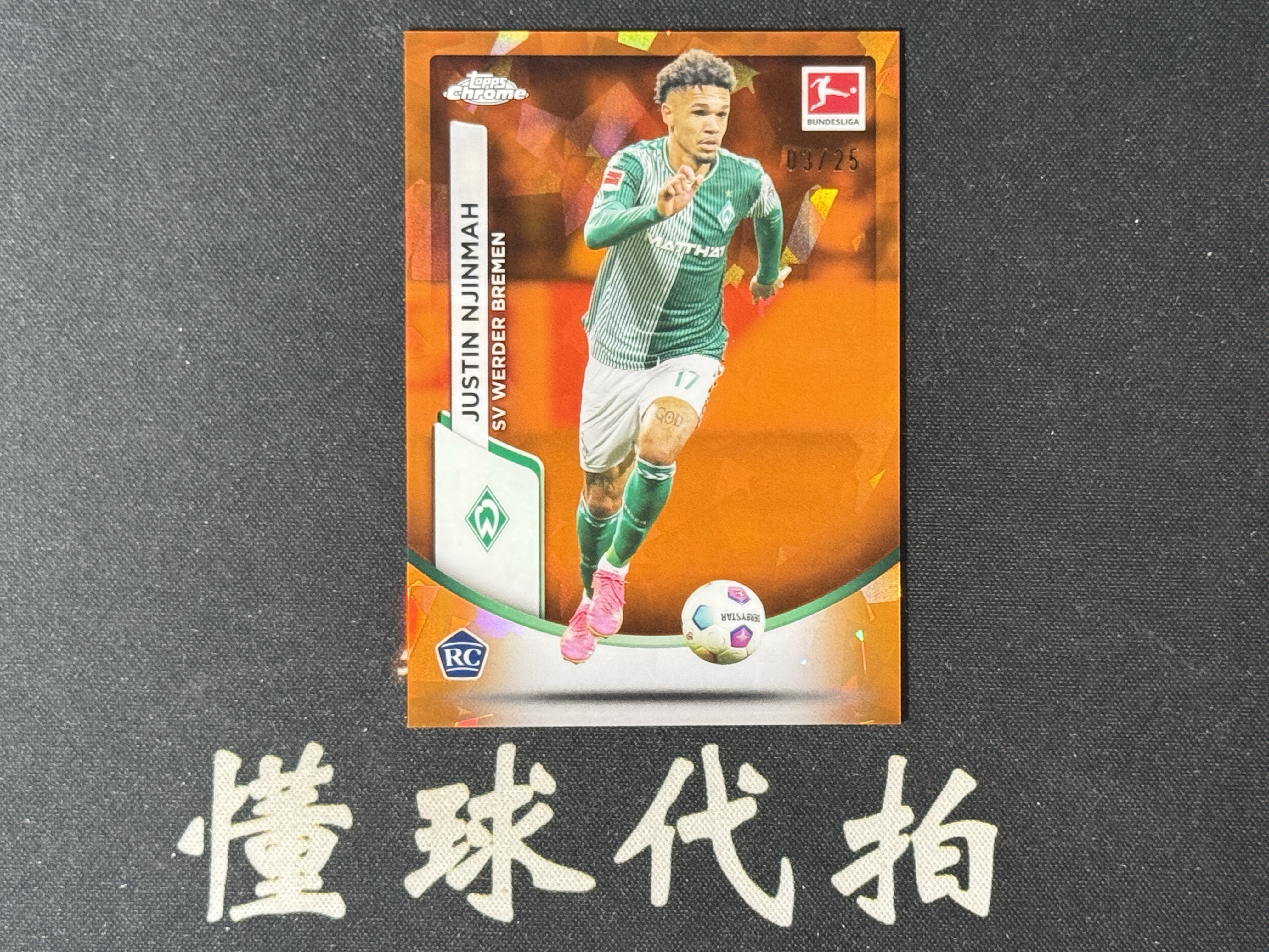 【懂球代拍】2023-24 topps 德甲chrome蓝宝石 RC新秀 限量 25编 JUSTIN NJINMAH恩金马 不莱梅 德国 橙碎冰折射 值得收藏 DQ079A 005