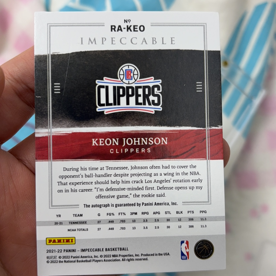 2021-22 Panini Impeccable Keon Johnson RC 小真金 RC 超低编 8编 3/8编 快船 基翁 约翰逊 新秀RC 签字 卡签