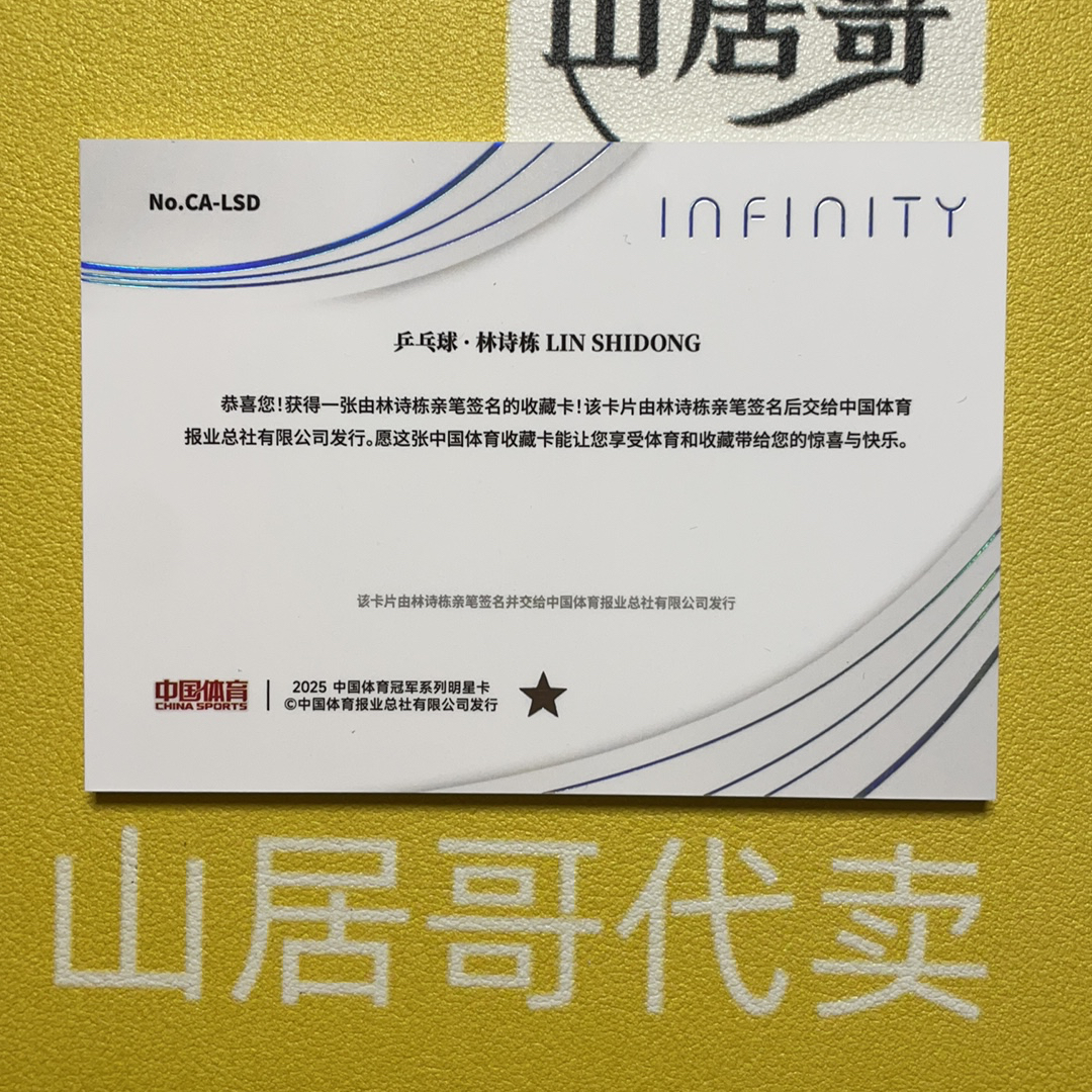 2025 中国体育 中国体育 无限 林诗栋 中国体育 无限 乒乓球 林诗栋 FS新秀 23/25编 签字 贴签 轻印如图 图T【山居哥代卖】