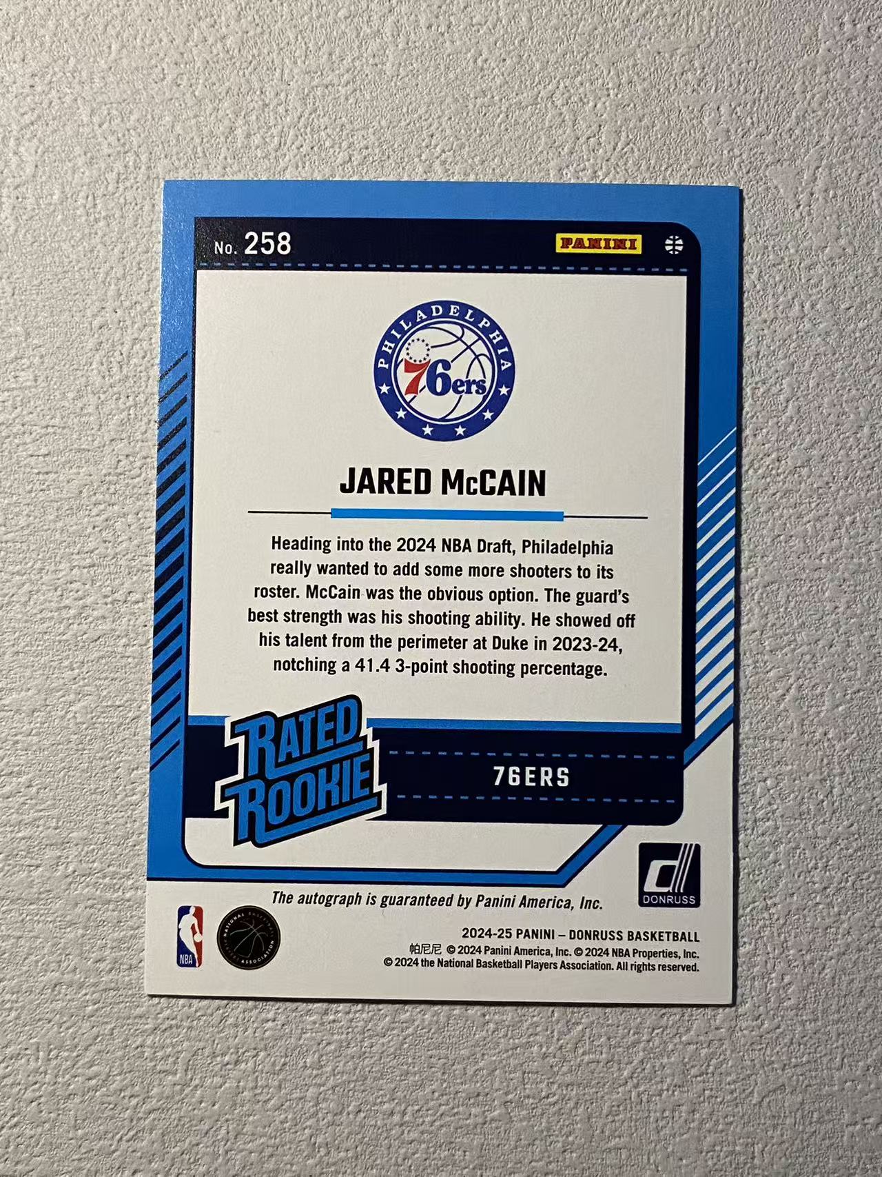 2024-25 Panini Donruss Jared McCain RC 杜蕾斯 76人 新秀rc 麦凯恩 魔仙哥 /49编 签字 佛光折 折射 收藏必备