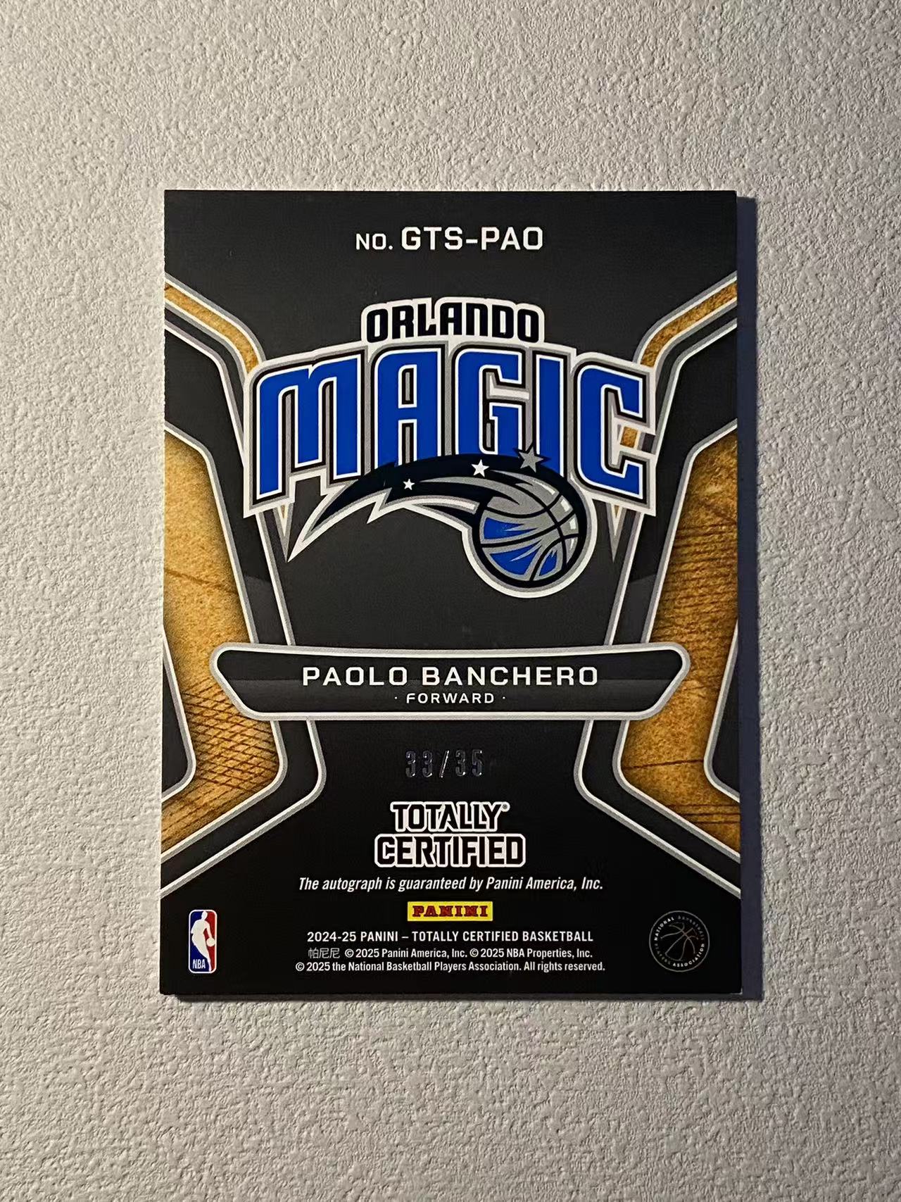 2024-25 Panini Totally Certified Paolo Banchero 卫生巾 魔术 状元 保罗 班凯罗 班切罗 /35编 低编 签字 蓝折 折射 收藏必备