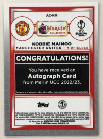 ![[爷叔代卖]2023 Topps Merlin Kobbie Mainoo RC 梅林 新秀 科比 梅努 曼联 欧冠 签字 银折 英格兰 库尼亚 谢什科 B费 姆贝乌莫 队友 卡品如图](https://images.cardhobby.com/e3e2db1ad6265ae9fe4c190892847ca61763265508308.jpg)