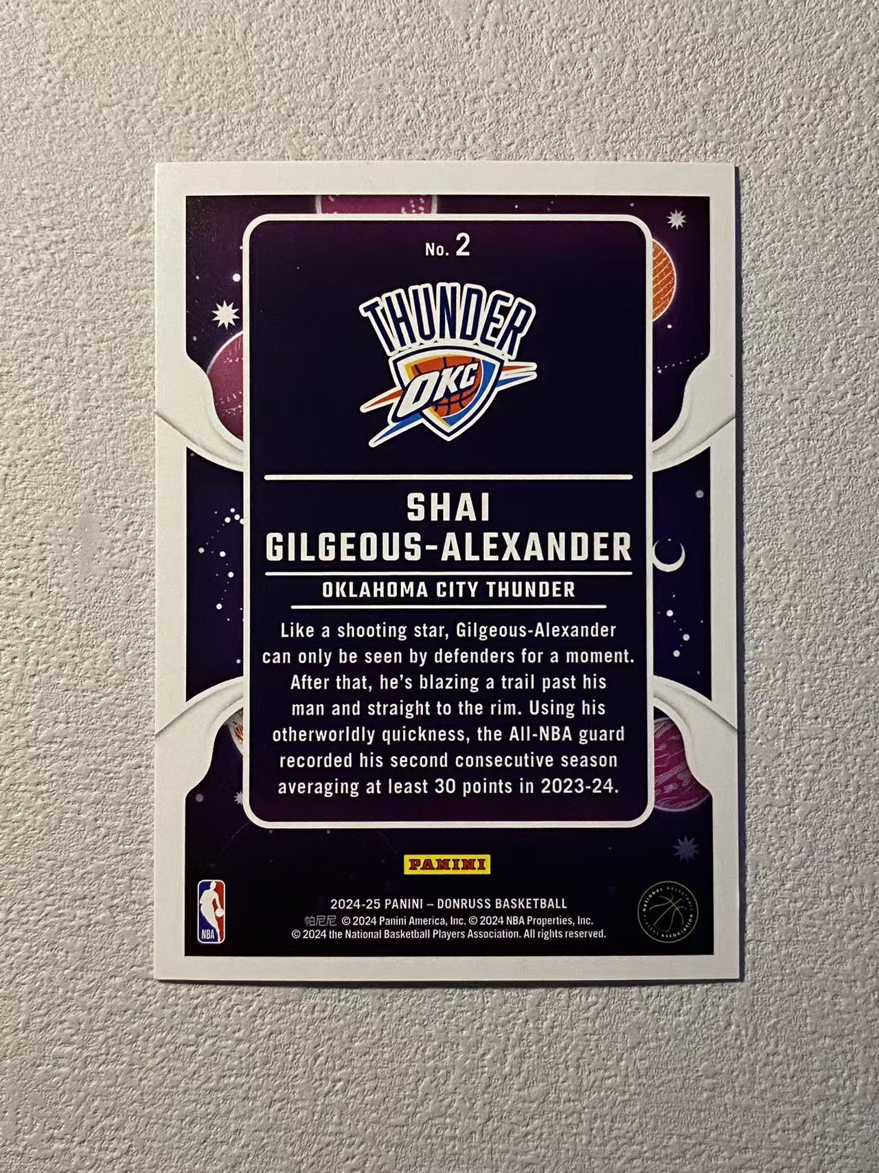 2024-25 Panini Donruss Shai Gilgeous-Alexander 杜蕾斯 雷霆 亚历山大 sga /75编 零重力特卡 红钻石折 折射 收藏必备