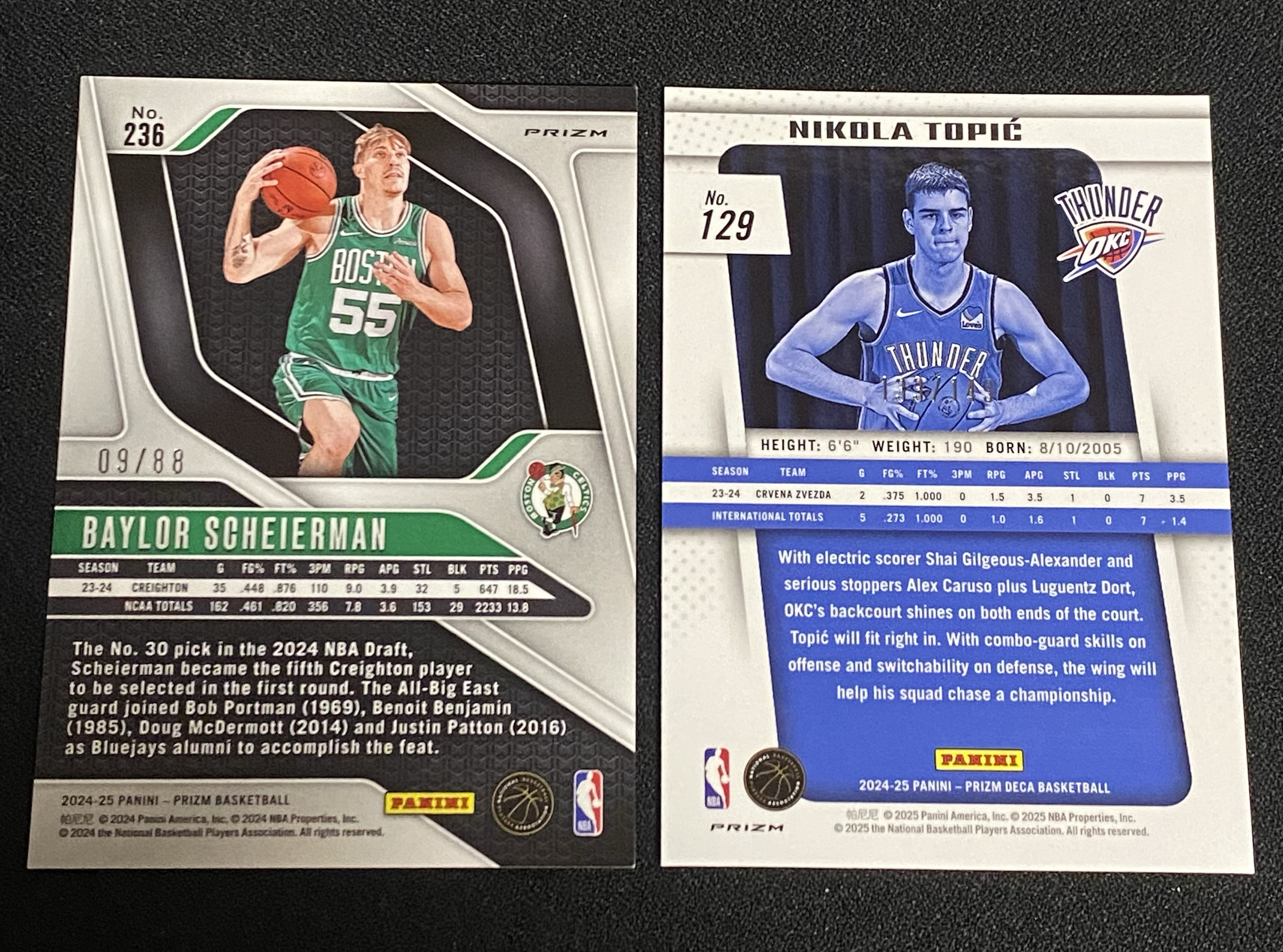 【胡子球手】2024-25 Panini Prizm Baylor Scheierman RC 凯尔特人 新秀 沙伊尔曼 /88编 红圈圈折 雷霆 尼古拉 托皮奇 /149编 蓝折 宸哥